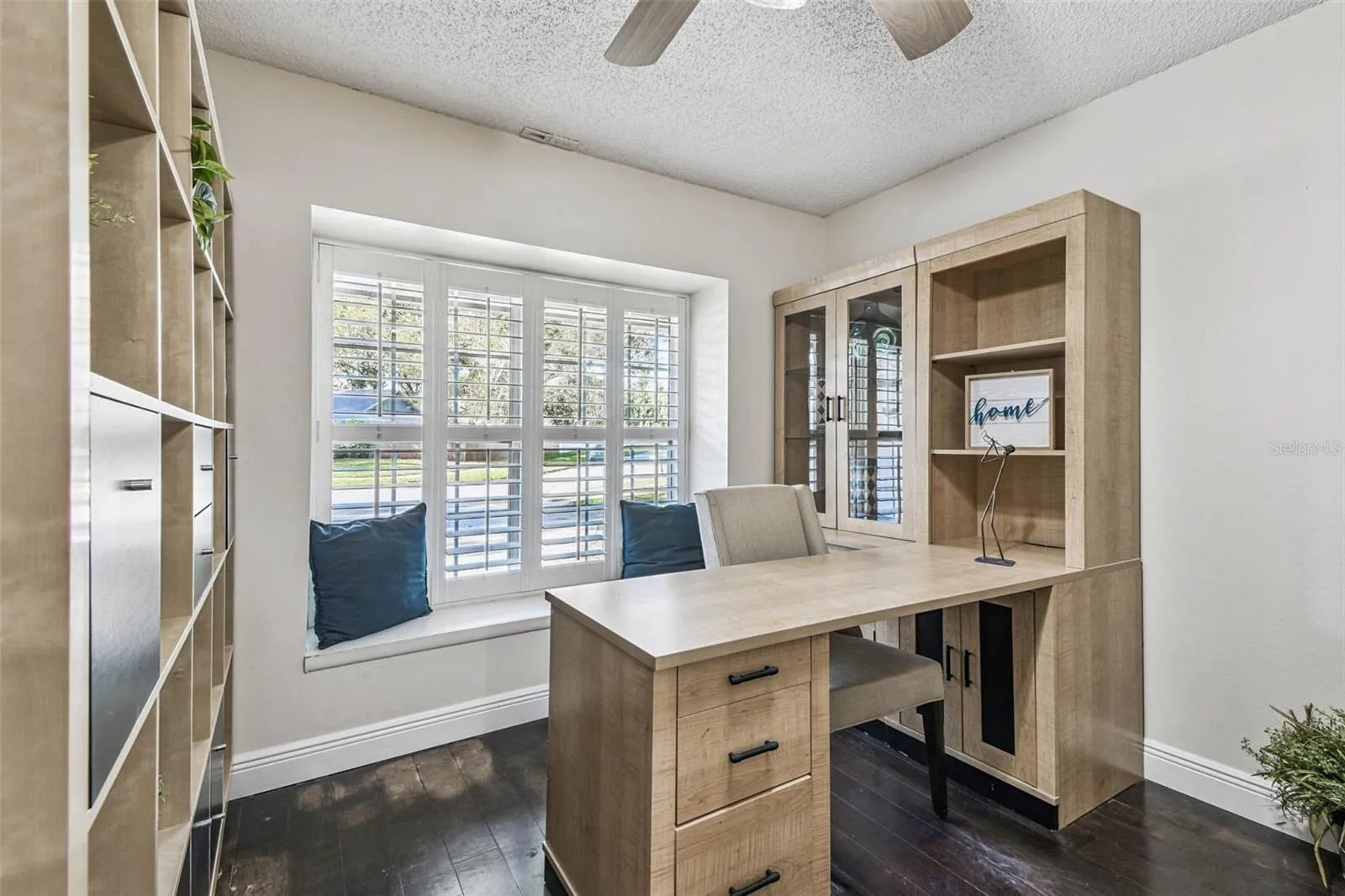 - Ceiling Fans(s), Walk-In Closet(s), Eat-in Kitchen, Primary Bedroom Main Floor, Split Bedroom, High Ceilings, Solid Wood Cabinets, Solid Surface Counters, Built-in Features