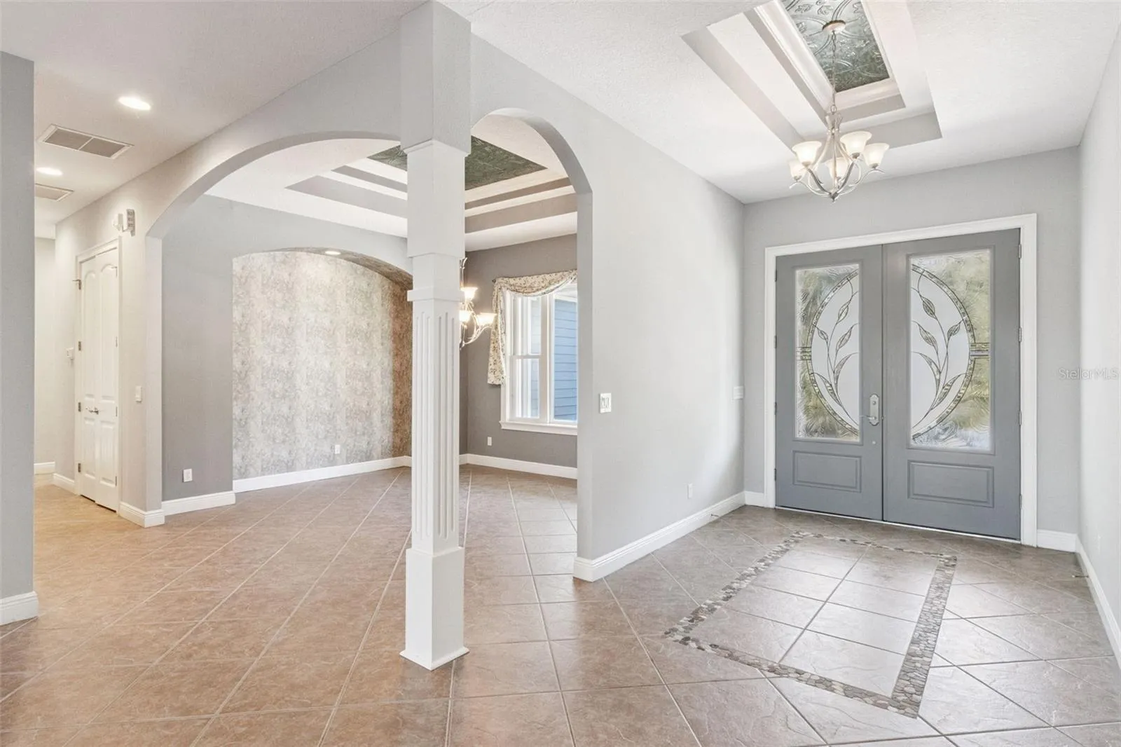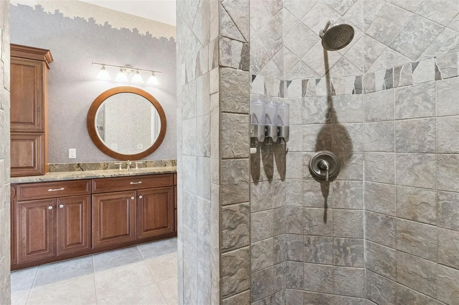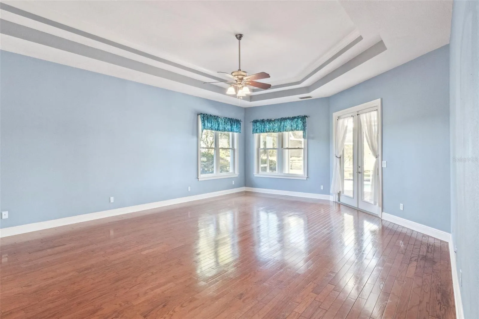 - Ceiling Fans(s), Thermostat, Walk-In Closet(s), Eat-in Kitchen, Primary Bedroom Main Floor, Split Bedroom, Window Treatments, High Ceilings, Stone Counters, Solid Wood Cabinets, Tray Ceiling(s), Wet Bar