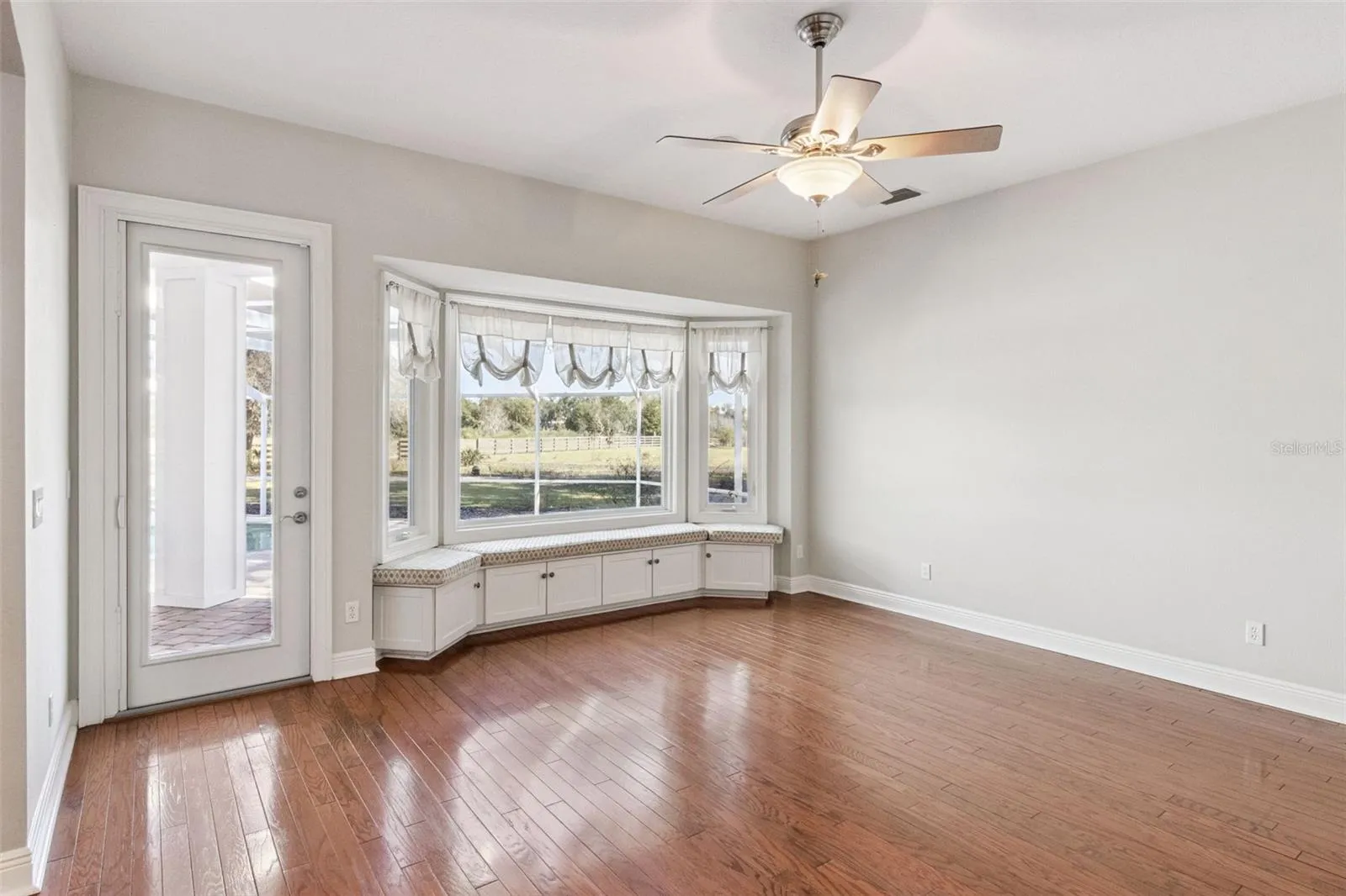 One or more photo(s) has been virtually staged. Set on over eight acres of peaceful, country-like surroundings yet minutes from I-4, this 3/3 and almost 3500 sf custom pool home is framed by mature Florida landscaping, a stunning oak tree canopy, and a charming butterfly garden complete with a fountain and gazebo. A slate-floored front porch stretching more than 50 feet welcomes you home along with double front doors which open to a great room with wood-burning fireplace, French doors to the screened pool, and eye-catching tin ceilings in the foyer and dining room along with the wet bar – complete with wine fridge and bar sink. The well-designed kitchen offers double ovens, an island, breakfast bar, built-in desk, under-cabinet lighting, and a cozy breakfast nook overlooking the pool and flows into the living room with bay-window bench seating and additional pool access. The large master suite features an oversized closet, spacious en-suite bathroom, and French doors to the patio and pool, while Bedroom 2 includes an en-suite bath and walk-in closet. Bedroom 3 sits conveniently near a full hallway bath and the large office with two closets provides flexibility as a potential fourth bedroom. Beautiful wood floors run throughout the bedrooms, living room, and office, with ceramic tile in the remaining living spaces. Additional conveniences include a back-hall drop zone and storage bench, spacious laundry room with storage and laundry tub, a shed in the yard with electricity, fenced yard, and an impressive four-stall garage with 9ft doors and an extra-tall ceiling as well as new pool screen and roof (both replaced in 2024). Ideally situated between Lakeland and Tampa and just 10 minutes from Publix, this property is the perfect blend of privacy, comfort, and accessibility.