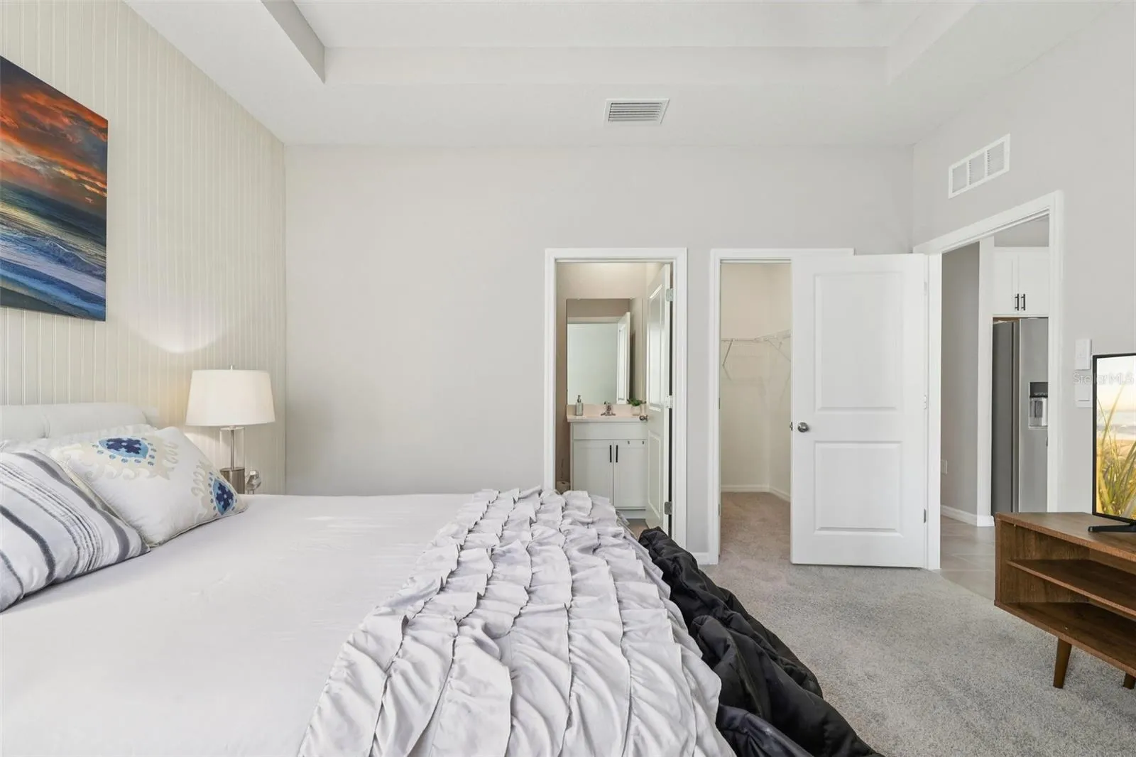 This home features four generously sized bedrooms and 3.5 bathrooms, all well-zoned for privacy and comfort. The primary suite offers a serene escape with a luxurious en-suite bath, while the additional bedrooms are perfect for family, guests, or a home office. The spacious laundry room with a utility sink and cabinets adds convenience to daily chores.