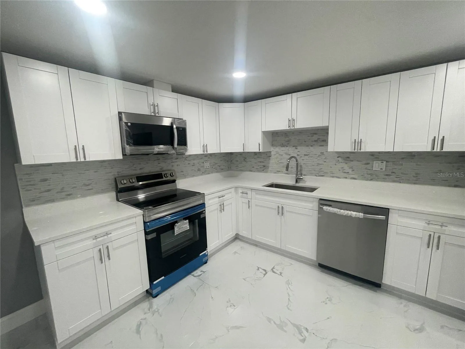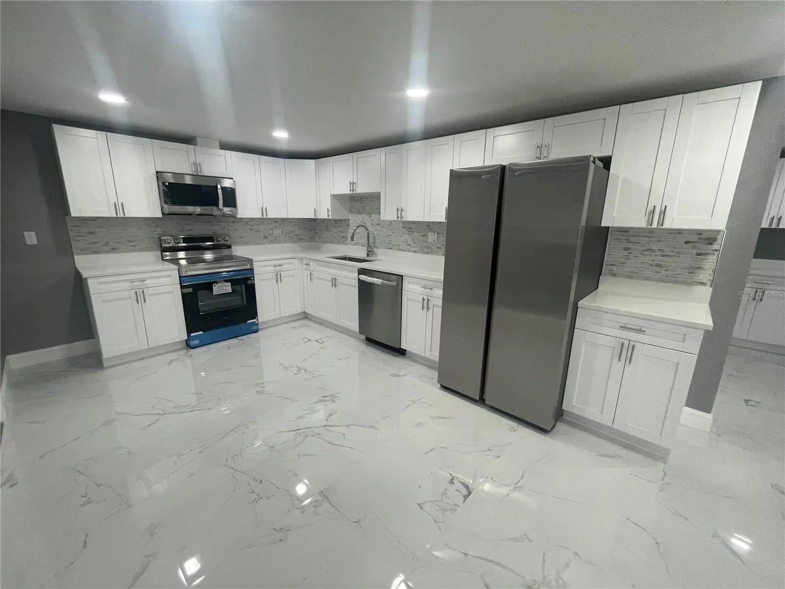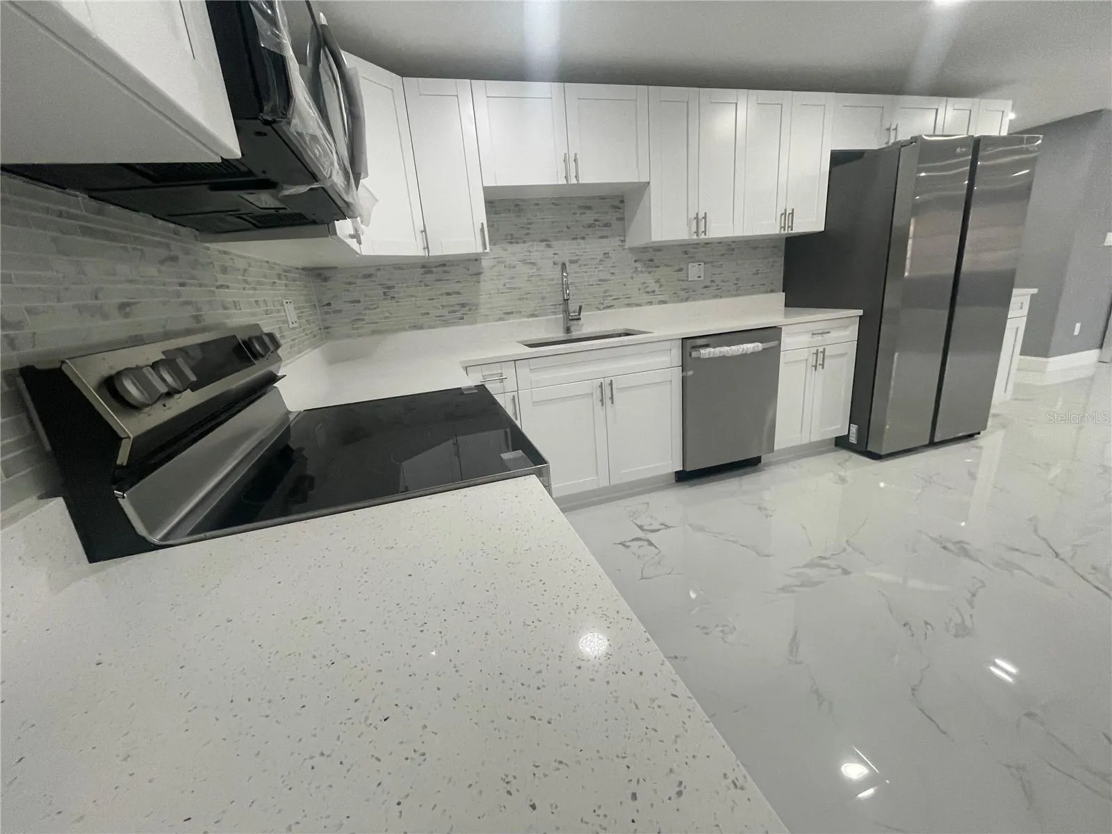 UPDATED BRIGHT HOME, CORNER LOT, WITH 3BR/2 BATH/2 CAR GARAGE, OFFICE/BONUS ROOM, BAR AREA AND RV OR BOAT PATH. An excellent location in a well-established family neighborhood. As you approach the home you will see the specious foyer, leading you to an elegant front door. Step into the house and see a generous living/ dining Room area, a perfect space for gatherings and entertaining guests. To your front it is the bonus/office room that gets you to the back enclose with windows Lanai, An ideal retreat just waiting for you with access to your RV or boat path and the backyard and to the left it is the beautiful kitchen with new cabinets, modern quartz countertops and backsplash, new stainless steel appliances, and next to it the bar and thrid bedroom and then an open dining room for delightful meals and celebrations. From the entrance to your right the updated guest bathroom with new shower tile top to bottom, a new modern shower fixture, and a new vanity with a quartz top. From the kitchen you access the garage recently painted flooring and good lighting enabling you to use the spaces as a man cave or playroom! And the second bathroom with new shower tiles, a new modern shower fixture, and a new vanity. The house contains LED lighting fixtures and exceptional ceramic tile flooring with 5″ floor molding trim all over the house, a combination hard to find in a house today also Throughout the house are new 6-panel doors. Recently painted interior, exterior…And much more! The house is located at walking distance to shopping stores too! ROOF INSTALLED IN 2025, AC SYSTEM 2021, PUBLIC SEWER, NO HOA, NO CDD, NO FLOOD INSURANCE REQUIRED!! Come see it before it gets under contract !! PROFESSIONAL PICTURES COMING SOON!
