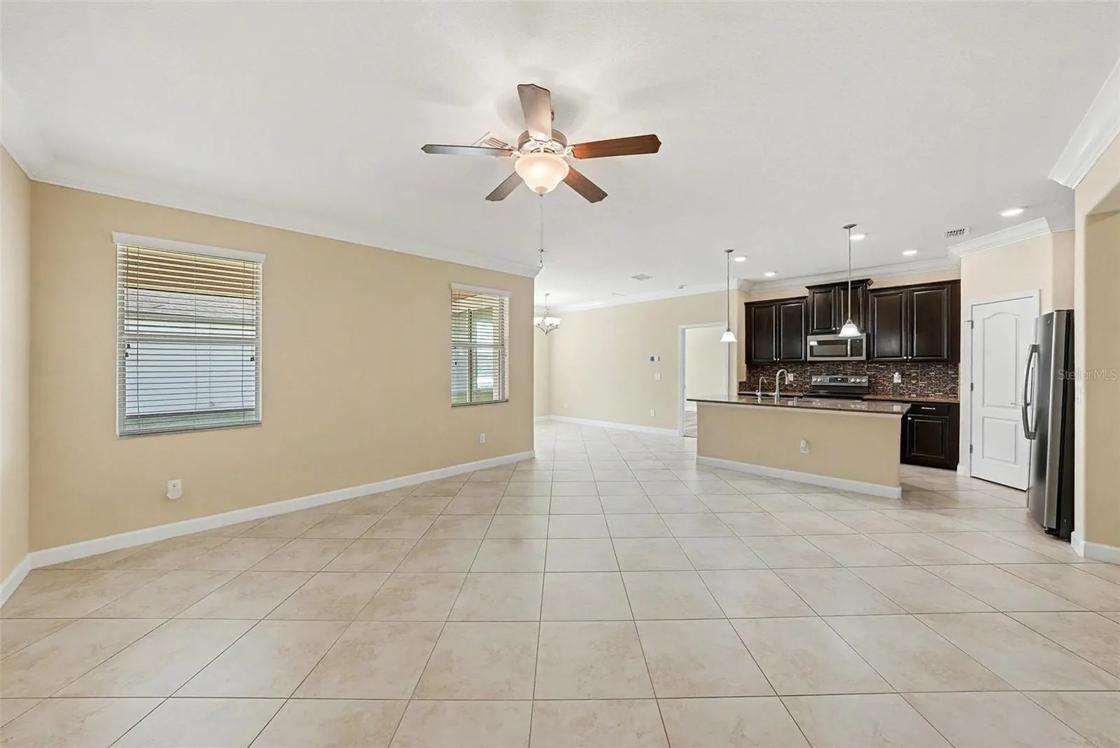 - Ceiling Fans(s), Crown Molding, Open Floorplan, Walk-In Closet(s), Eat-in Kitchen, High Ceilings, Solid Wood Cabinets, Solid Surface Counters, In Wall Pest System, Attic Ventilator
