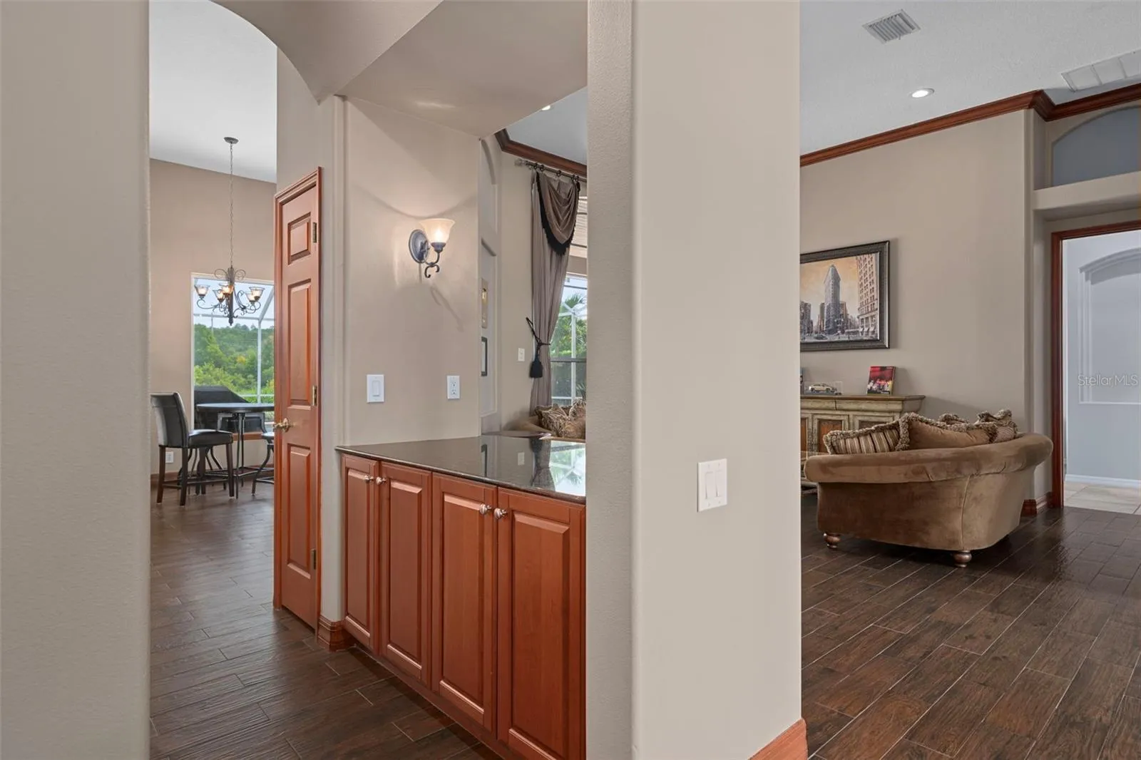 This WATERFRONT 4-bedroom + office + bonus residence offers 3715 sq. ft. of versatile living space designed for both elegant entertaining and everyday comfort. A brick-paver driveway leads to the grand entry, where you’ll find rich wood flooring, formal living and dining rooms, and a wet bar with multiple refrigerators—perfect for hosting gatherings. The home’s thoughtful three-way split plan accommodates large households with ease.