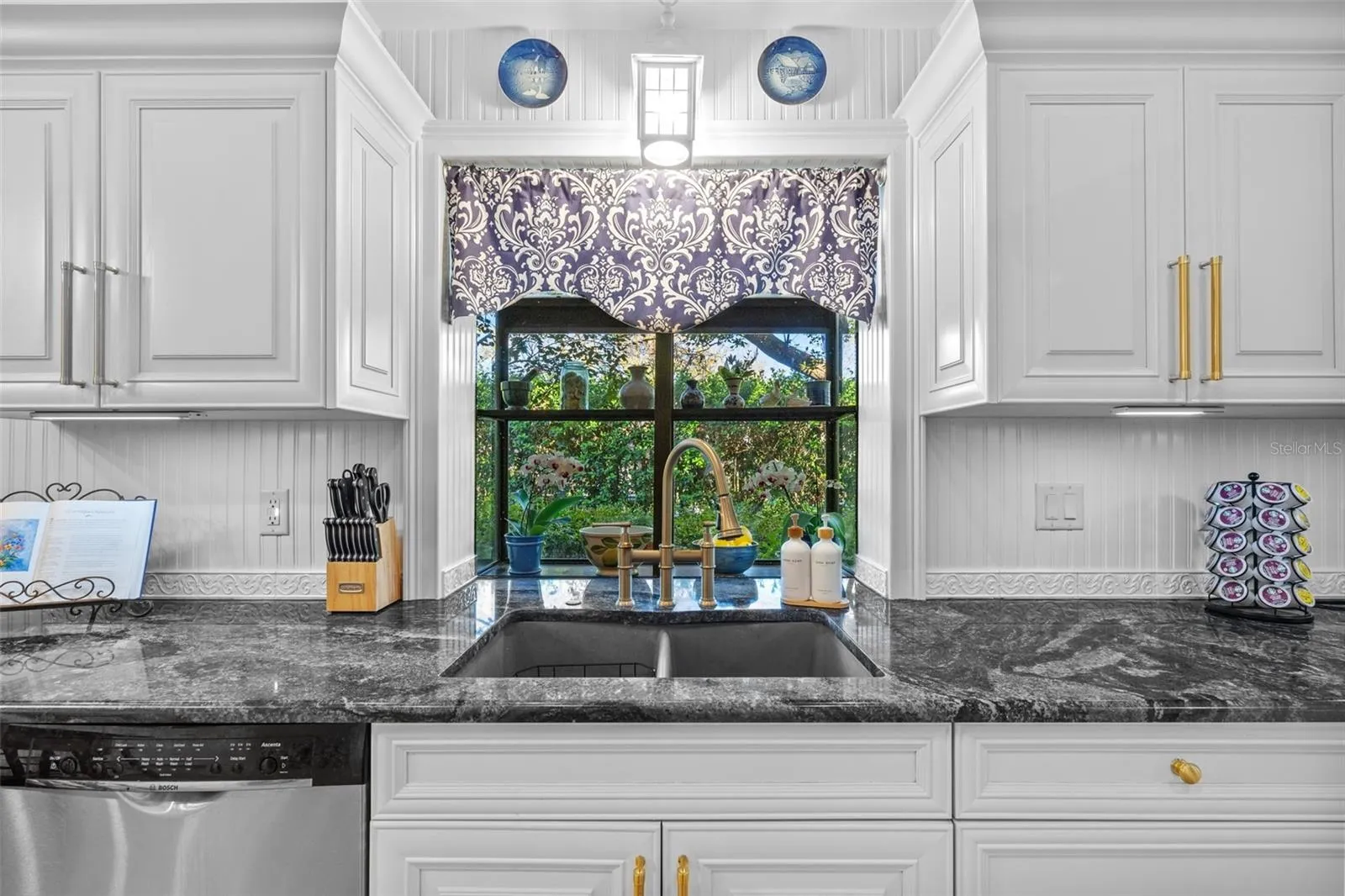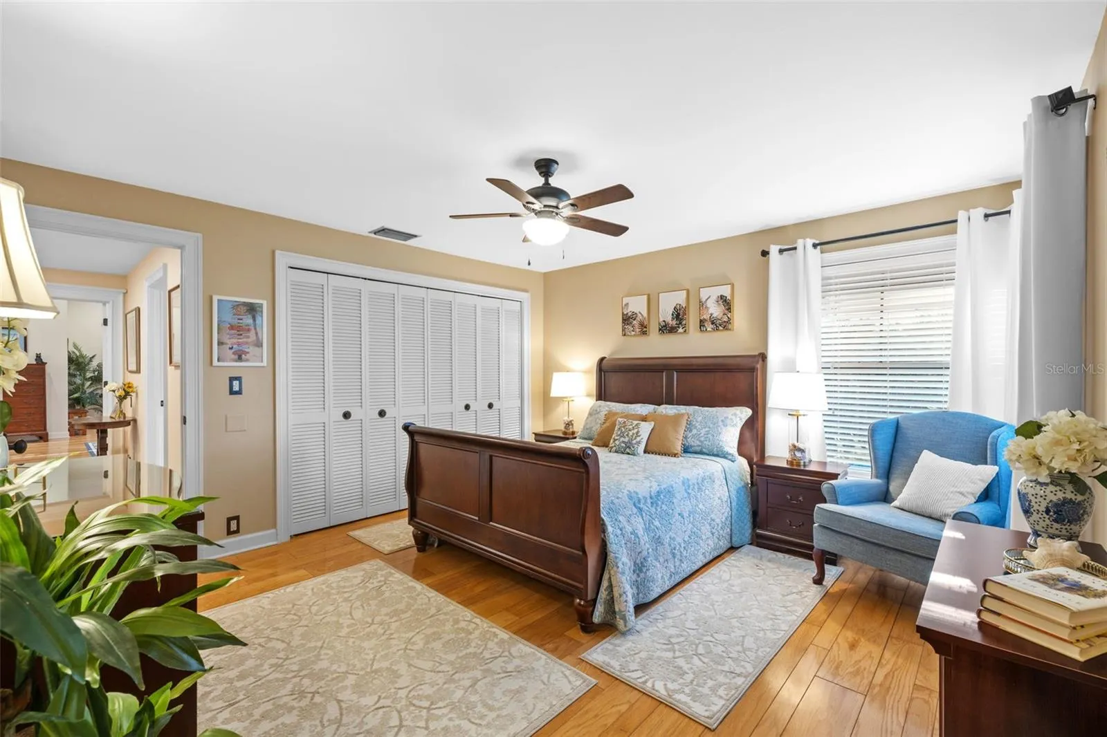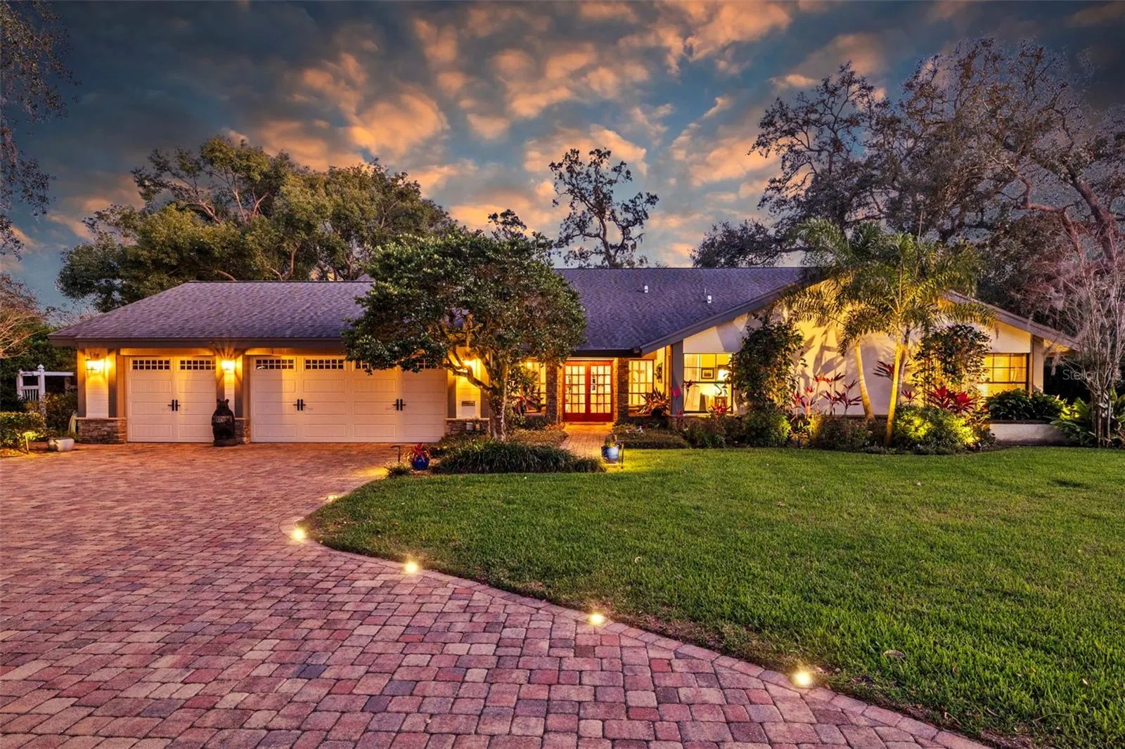 This exceptional home in the prestigious Cypress Run community is an expansive Arthur Rutenberg “Cayman” design residence with 3,465 sq. ft. of interior living space featuring a south-facing covered lanai and enclosed heated saltwater pool suitable for swimming laps. Beautiful landscaping, lush gardens, mature oaks, hedged paver-driveway, and stone retaining walls make this property impressive. Its location offers views down the fifth fairway and a desirable buffer from course maintenance and tournament activities. The French door entryway opens into a vaulted-ceiling great room with views of the lanai, sparkling blue pool and gardens beyond. Richly textured walls, fine moldings, stained glass, and hardwood floors add warmth and elegance throughout. A sunken reading and conversation area features a wood-burning fireplace and a fully equipped wet bar. The family room’s scenic windows provide a beautiful view of the vast backyard, pergola, and gardens. A gourmet kitchen features dual ovens, induction cooktop, granite counters, custom cabinetry, modern fixtures, and an adjoining butler’s pantry and laundry room. Luxury continues in the primary bedroom and adjacent bathroom spa that features elegant gold-toned fixtures, a quartz-topped dual vanity, lighted mirrors, walk-in closet, soaking tub, and direct access to the lanai and pool. European fine details are found in the “Venetian” powder room and guest bathroom.