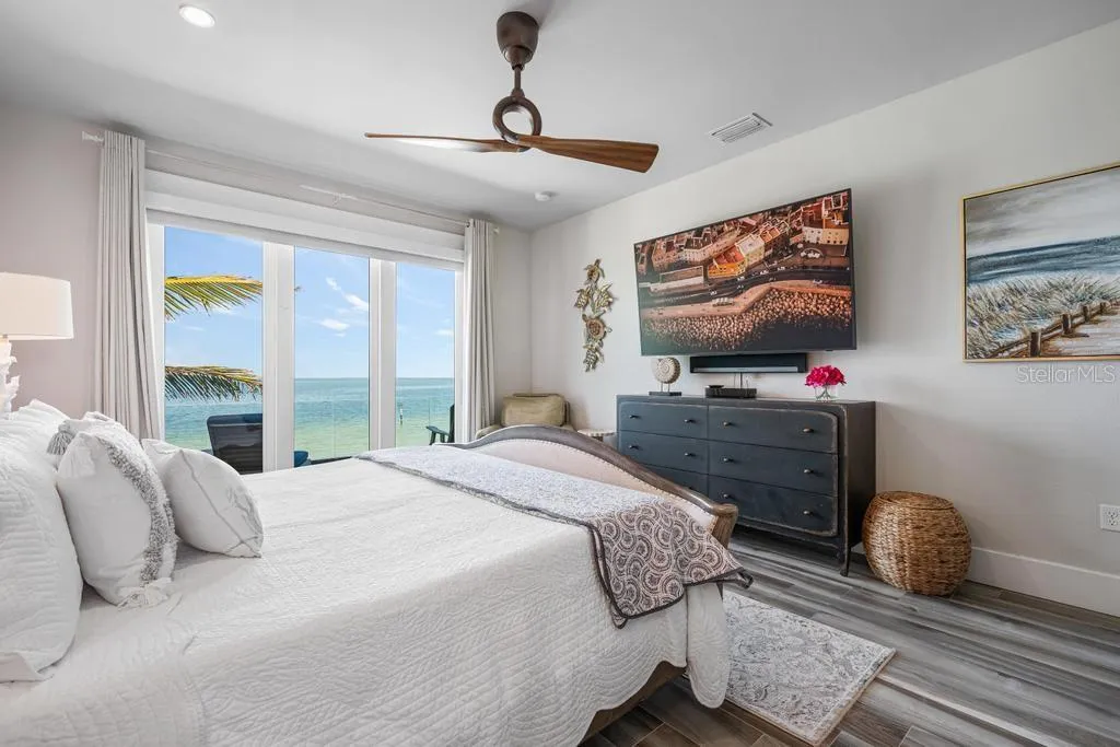 Direct Beachfront Luxury with Exceptional Rental Income on Anna Maria Island. Discover the ultimate in coastal elegance with this direct beachfront home on the shores of Anna Maria Island. A rare beachfront home sold turnkey furnished that seamlessly blends refined luxury with a proven record of outstanding short-term rental performance. Recently enhanced with numerous upgrades including new sliding doors on the upper level—this home showcases high end finishes and expansive walls of glass that capture sweeping views of Tampa Bay and the iconic Sunshine Skyway Bridge. The spacious living and dining areas open through floor-to-ceiling sliders to a generous bayfront balcony, creating an effortless indoor–outdoor flow for entertaining or peaceful relaxation. The gourmet kitchen is a chef’s delight, featuring shaker cabinetry, a large island with seating, quartz countertops, and new premium stainless-steel appliances including a gas range. Each of the four bedrooms is a private retreat, complete with an en-suite bath and its own balcony framed by tropical scenery. Additional recent upgrades include new ground-level outdoor furnishings, refreshed tropical landscaping with exterior lighting, and newly painted interior and exterior spaces. The covered poolside lounge and dining area on the ground level are the perfect setting for waterfront living—just steps from the sand. As evening falls, enjoy the mesmerizing glow of the Skyway Bridge from your own serene getaway. Set on the pristine beachfront of Anna Maria Island, this home features timeless architecture, a spectacular coastal setting, and an unparalleled opportunity for both personal enjoyment and exceptional rental revenue. This 4-bedroom, 4-bath residence produced nearly $500,000 for 2025, $456,000 booked for 2024, and $464,000 in 2023. Future 2026 reservations in place Comprehensive rental history and future booking details for 2025 and 2026 are available upon request. A rare chance to own a true beachfront sanctuary.