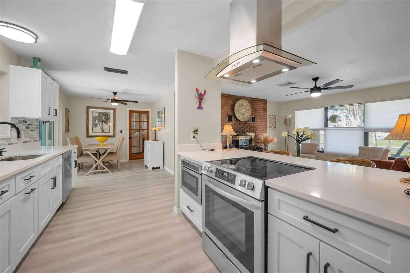 NEW PRICE for this charming coastal retreat in the prestigious community of Belleair Beach! This spacious, single-story residence offers 1,946 square feet of inviting living space, featuring three generous bedrooms, three full bathrooms and a two-car garage with a recently installed hurricane-rated door. Perfectly positioned on a 100′ x 100′ corner lot, the home sits just steps from a private beach access to the Gulf of Mexico. Enjoy a heated inground pool and spa—complete with a lap lane—ideal for both relaxation and exercise. A pair of stunning glass double doors welcomes you inside, where the living room is highlighted by a brick-faced, wood-burning fireplace. The updated eat-in kitchen boasts crisp white cabinetry, quartz countertops and stainless-steel appliances. The ensuite primary bedroom offers comfort and privacy, while the two guest bedrooms share a convenient Jack-and-Jill bath. In addition to the living and dining rooms, a spacious bonus room opens directly to the screened lanai and pool area, perfect for indoor-outdoor living. The interior laundry room includes a new full-sized washer & dryer and a third bathroom, that provides direct access to the pool! Lush tropical landscaping—featuring palms, plumeria, and hibiscus—creates a serene coastal setting. All this, with restaurants and convenient shopping just minutes away!