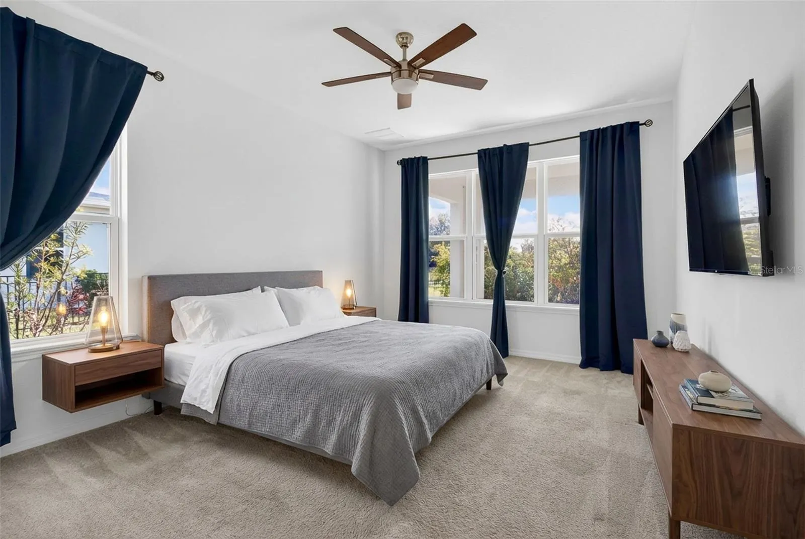Welcome to this exceptional 4-bedroom, 3.5-bath home offering 2,636 sq ft of beautifully designed living space, built in 2022 and perfectly positioned on a quiet cul-de-sac in the highly desirable Artisan Lakes – Eaves Bend community. This home blends modern elegance with everyday comfort, featuring a first-floor primary suite and a stunning open living area with soaring ceilings that create a bright, spacious feel from the moment you enter.
