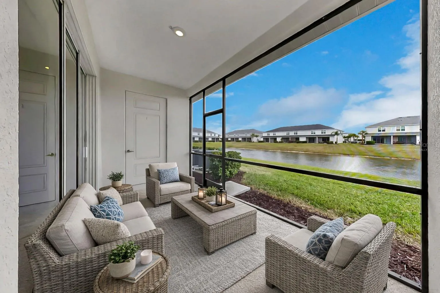 One or more photo(s) has been virtually staged. Welcome home to 8522 Canyon Creek Trail! This 3-bedroom, 2.5-bath home offers 1,822 square feet of comfortable living in the friendly, gated community of North River Ranch. Built in 2021, it’s been thoughtfully designed with space and convenience in mind. As you step inside, you’ll love the open floor plan that connects the living room, kitchen, and dining room—perfect for relaxing or entertaining. The kitchen features a large pantry and easy access to a convenient half bath. Just beyond the dining area, sliding doors open to a screened-in, covered lanai where you can unwind while taking in peaceful water views. There’s even an extra storage unit off the lanai to keep outdoor items tidy and within reach. Upstairs, a spacious bonus loft offers a flexible space for a playroom, home office, or cozy reading corner. All three bedrooms are located on the second floor, including a generous primary suite with a large walk-in closet and a private bathroom featuring a double vanity and linen closet. The upstairs laundry room and additional storage closet off the loft make daily living simple and organized. Living in North River Ranch means you’ll also enjoy access to multiple community amenity centers—including the highly sought-after Camp Creek, featuring a sparkling resort-style pool, double loop water slides, cabanas, and plenty of opportunities for fun and connection with neighbors. Continue your outdoor activities at the Pickleball courts, the Bike Pump Park, and the Great Lawn—which is perfect for picnicking, yoga, or playing catch. Camp Creek’s Clubhouse also includes a lounge area, a grab-and-go cafe, a business center, and individual workspaces. Just across the Great Lawn is the Outpost Activity Center for after-school games, family nights, birthday parties, and more. From the relaxing water view to the modern layout and amazing community amenities, this home truly has it all—a perfect mix of comfort, convenience, and resort-style living.