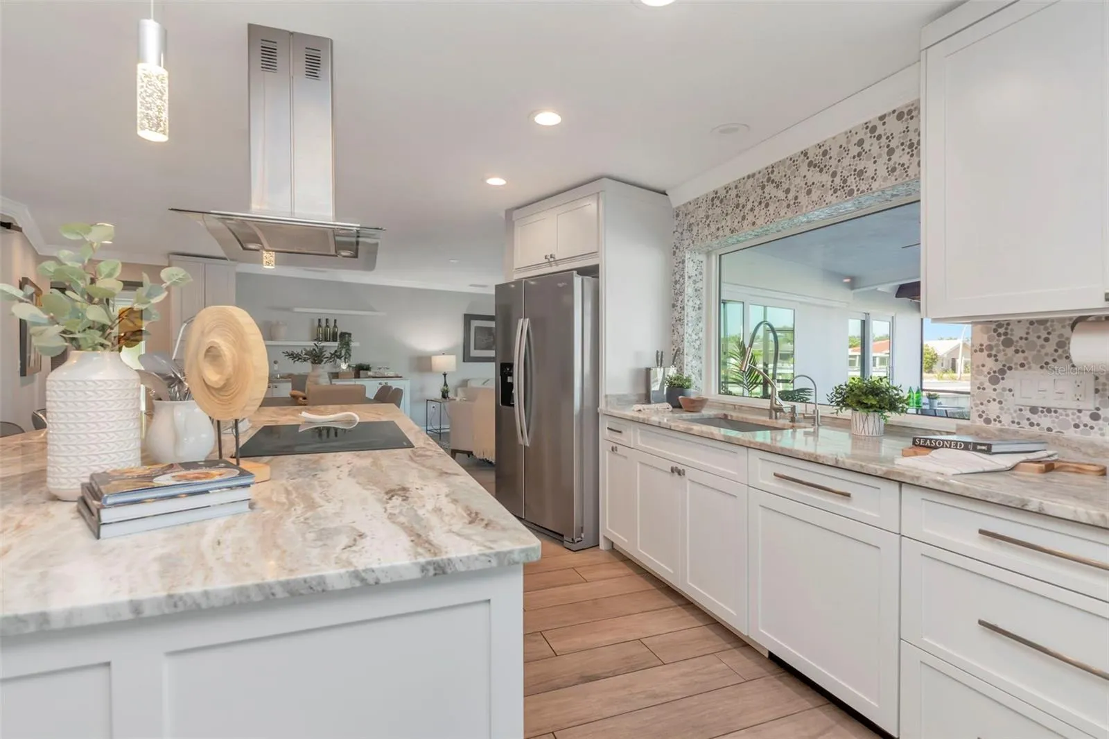 The kitchen is thoughtfully appointed with a sleek induction cooktop, new refrigerator, and a dedicated wine fridge—perfect for entertaining—offering a modern and elevated culinary experience. Additional highlights include wiring for a generator or electric backup system and a garage featuring a custom Elfa storage system for optimal organization.