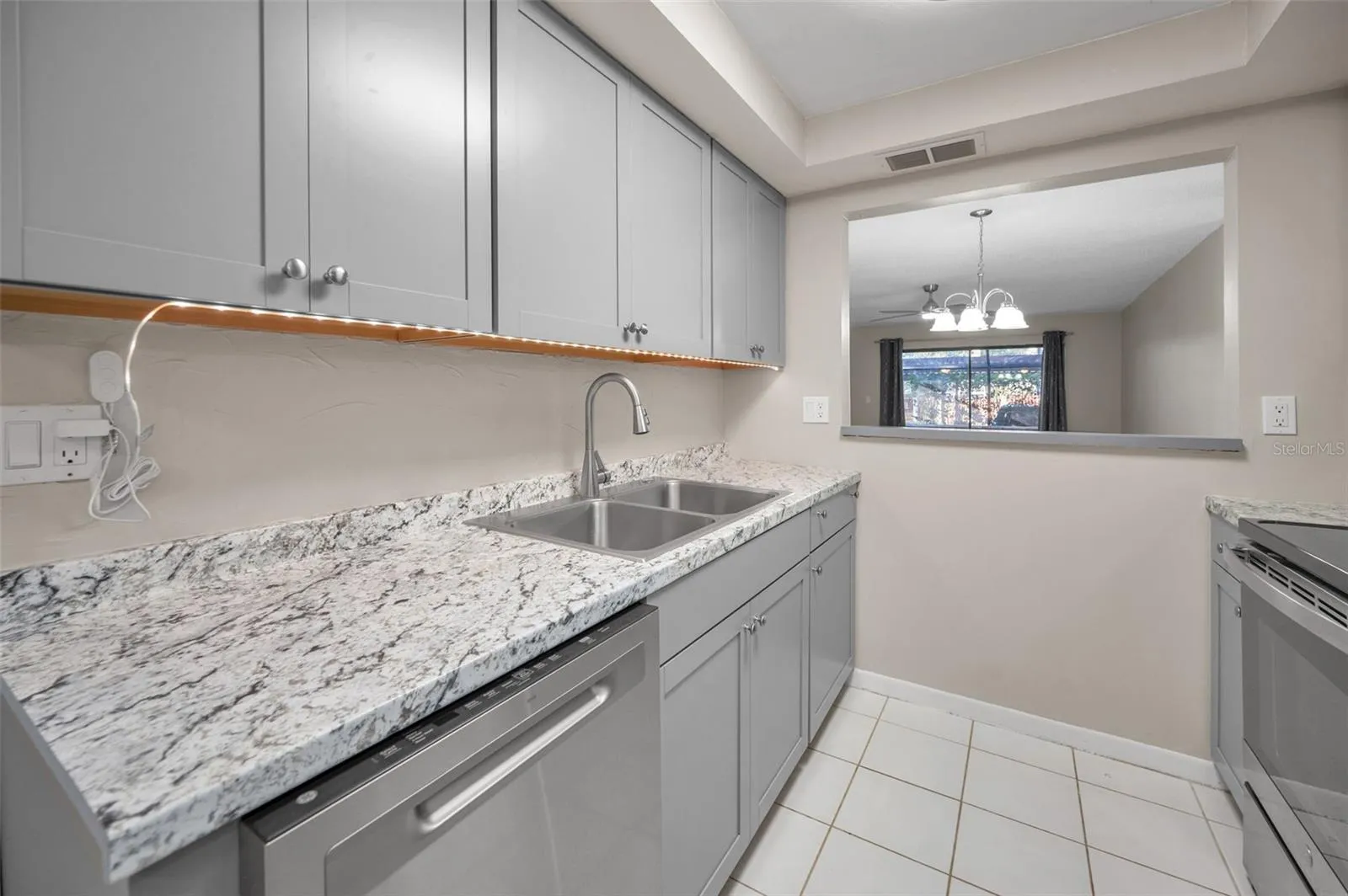 One or more photo(s) has been virtually staged. Experience refined living in one of Clearwater’s most desirable locations. Nestled within the Estancia condominium community, this beautifully updated first-floor residence offers an exceptional blend of comfort, style, and convenience. The thoughtfully designed interior features two spacious bedrooms and two elegantly updated bathrooms, complemented by tile and laminate flooring throughout and an open, split-bedroom floor plan that enhances both flow and privacy. The kitchen has been tastefully upgraded with shaker-style cabinetry, new stainless steel appliances, under-cabinet lighting, and a charming seating area, perfect for a morning coffee. A pass-through to the dining area creates an ideal space for entertaining. Every detail has been considered, including all new interior and closet doors and coordinated bathroom vanities. Step onto the screened-in patio with new screens, offering a serene outdoor retreat. Estancia is a pet-friendly and lease-friendly community, allowing two pets with a combined weight of up to 60 lbs. Residents enjoy access to resort-style amenities, including a cable, community pool and tennis courts, while monthly fees conveniently cover exterior maintenance, water, sewer, trash, grounds care, and the roof which was just replaced in 2025. Ideally situated near great schools, Countryside Mall, Downtown Dunedin, and Safety Harbor, with easy access to major roadways, this residence offers an elevated lifestyle in the heart of Clearwater.