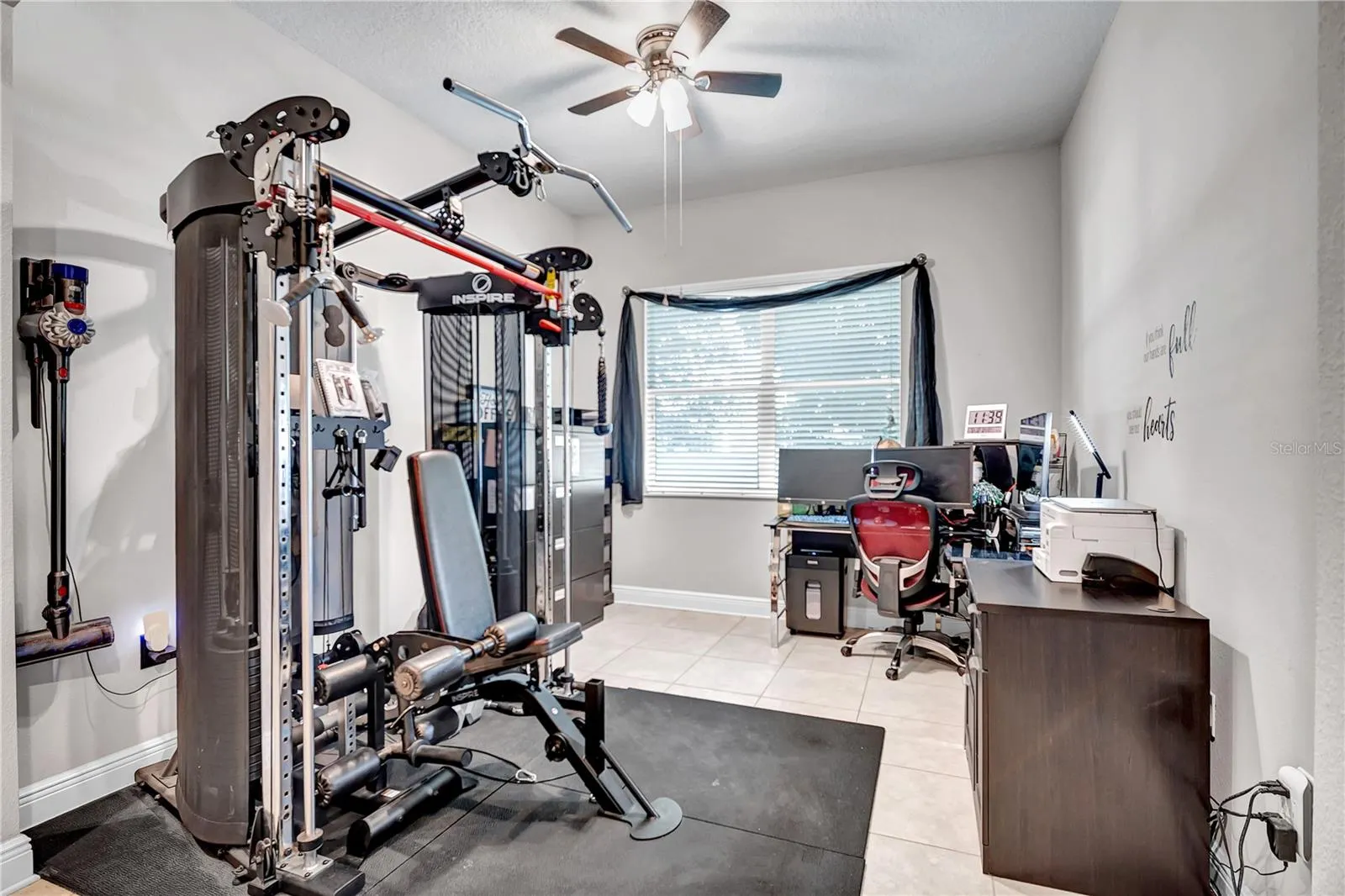 Built in 2018, this thoughtfully designed single-story concrete block residence offers a desirable 3-bedroom, 2-full-bath, 1-half-bath with a split floor plan, providing added privacy by separating the primary ensuite from the two secondary bedrooms. The home features approximately 2,200 square feet of heated living space, with a total building area of approximately 2,836 square feet, inclusive of the garage, enclosed lanai, and covered areas, all situated on an oversized 8,750 sq. ft. lot in West Tampa. The home features a contemporary aesthetic highlighted by high ceilings, ceramic tile flooring throughout the main living areas, and a dedicated formal dining space ideal for entertaining. Multiple rooms are equipped with wall-mounted televisions already installed, enhancing the home’s move-in-ready appeal. The well-appointed kitchen serves as a functional and inviting culinary hub, featuring granite countertops, 36″ cabinetry, upgraded stainless steel appliances, an undermount stainless steel sink, pantry storage, and recessed lighting. The primary ensuite is offered fully furnished, providing a turnkey retreat with a tray ceiling, a spacious walk-in closet, and a spa-inspired full bath complete with dual comfort-height vanities, granite countertops, a garden tub, a private enclosed toilet room, and a separate tiled shower with glass enclosure. Additionally, a separate utility room accommodates a full-size washer and dryer and includes a standalone washing basin and hanging rack. Additional interior highlights include designer lighting, solid-surface window sills, stainless steel fixtures, recessed LED lighting, and a dedicated home office with ample space suitable for a full home exercise gym, offering versatile use to meet today’s lifestyle needs. The property includes a 2-car garage and a long driveway ideal for tandem parking, providing ample off-street parking. Step outside to the enclosed lanai with cemented flooring, offering seamless indoor-outdoor living. The backyard provides space for grilling and recreation, with a non-attached storage shed offering additional storage. Energy-efficient features include Low-E dual-pane windows, Carrier central HVAC, programmable thermostats, a tankless water heater, and a 22kW Generac whole-house generator with a 200-amp transfer switch (added in 2022). Conveniently located near major roadways, downtown Tampa, shopping, dining, and local amenities. Showings are by appointment only. No showings after 6:00 PM