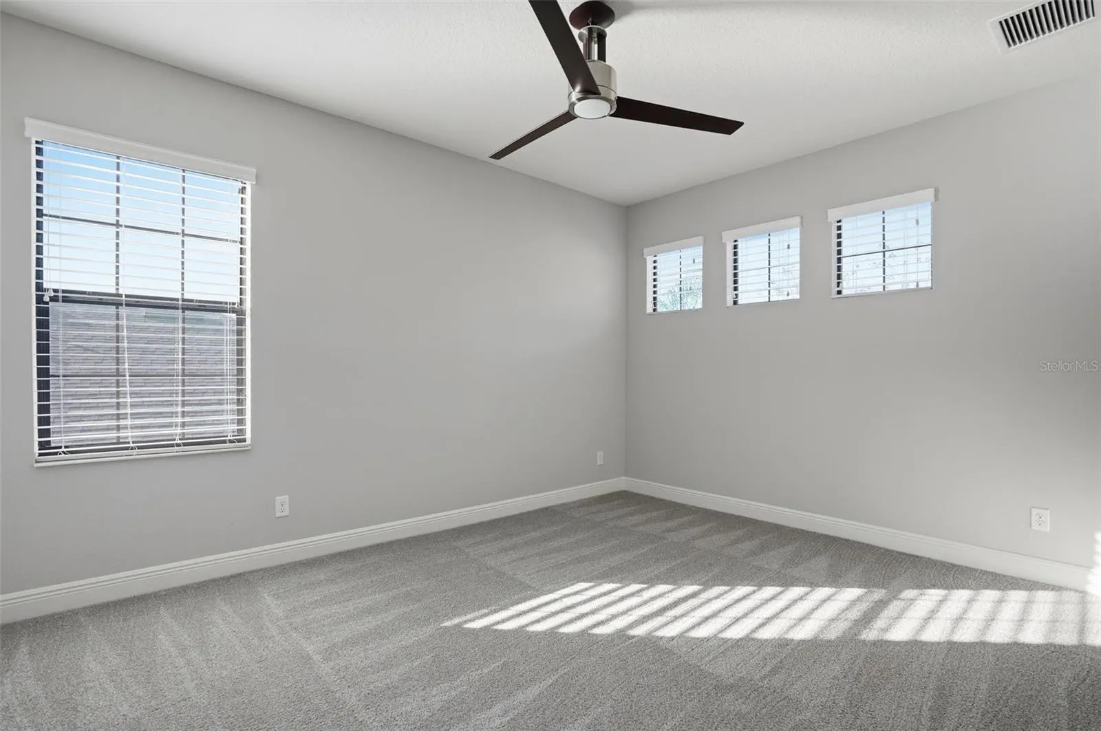 - Ceiling Fans(s), Crown Molding, Open Floorplan, Thermostat, Walk-In Closet(s), Kitchen/Family Room Combo, Primary Bedroom Main Floor, Window Treatments, High Ceilings, Stone Counters, Solid Wood Cabinets