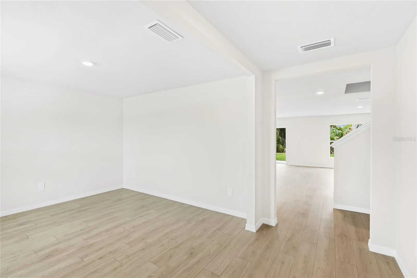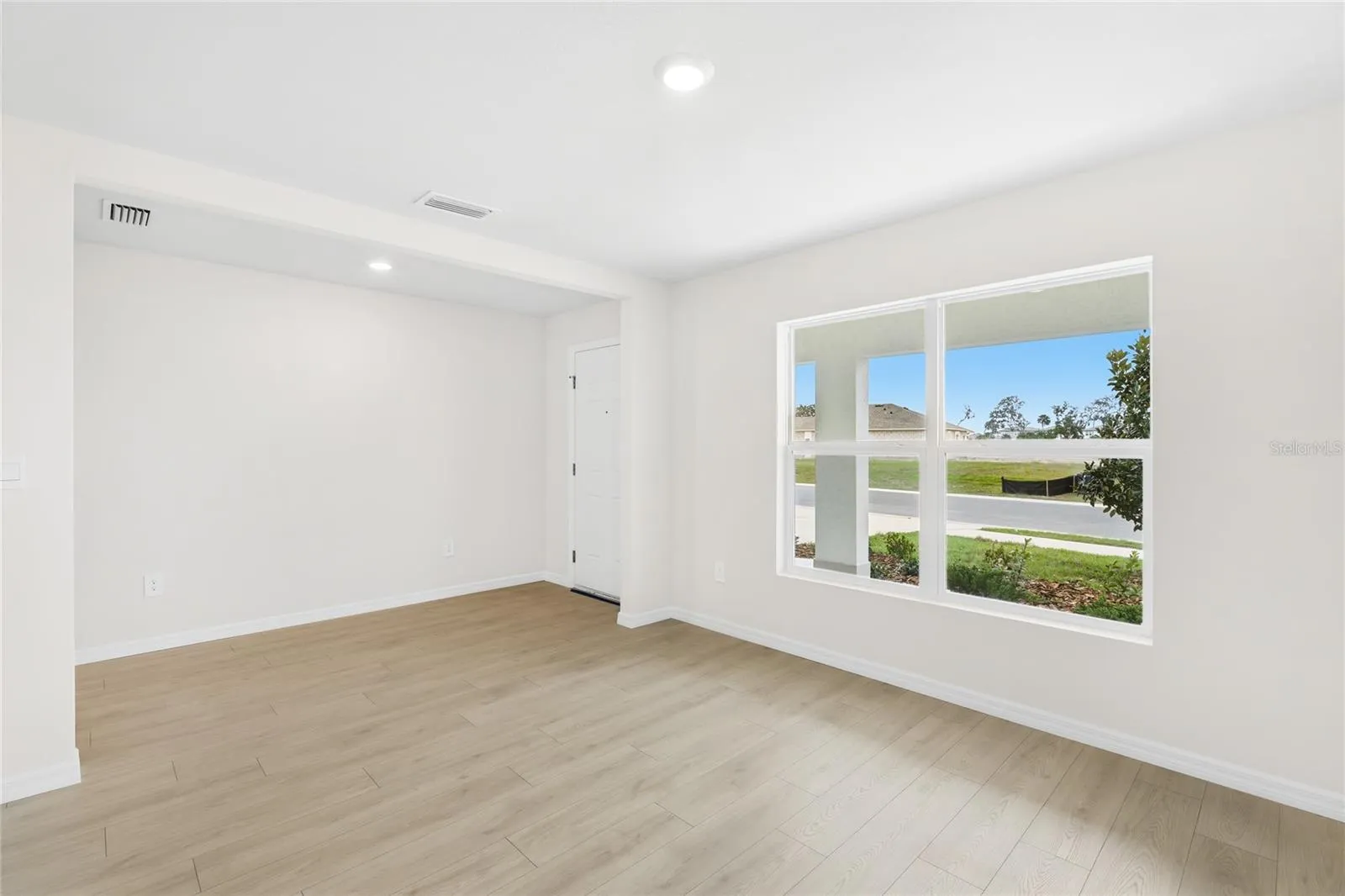 The first floor includes a full bedroom and full bathroom, ideal for guests or multigenerational living, along with the flex room, dining area, living space, and kitchen.