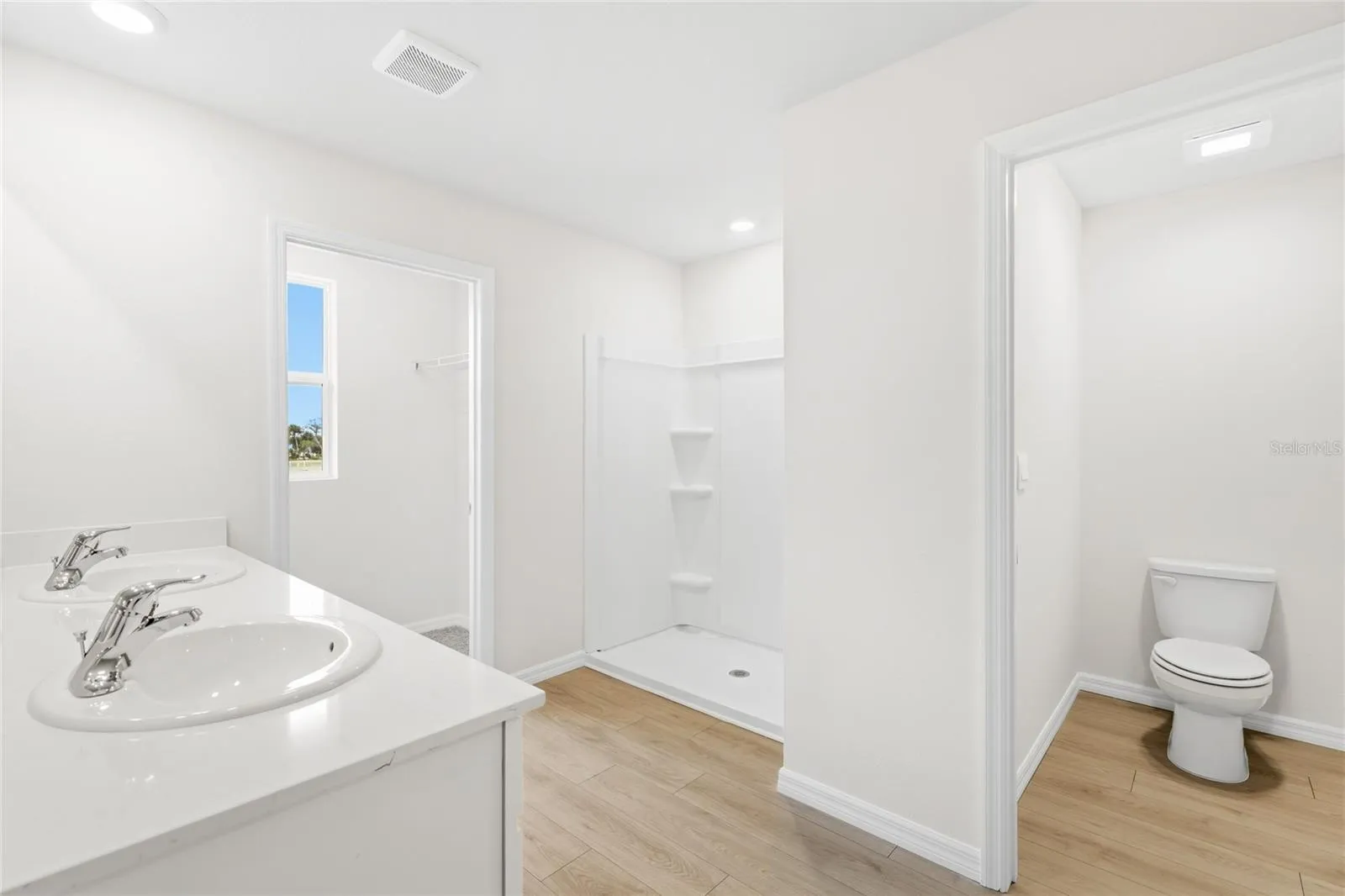 Upstairs, the expansive owner’s suite (approximately 20′ x 13′) boasts dual closets, dual sinks, and a private water closet. The second level also offers three additional bedrooms, a full bathroom, a spacious loft, and a convenient laundry room with washer and dryer included.