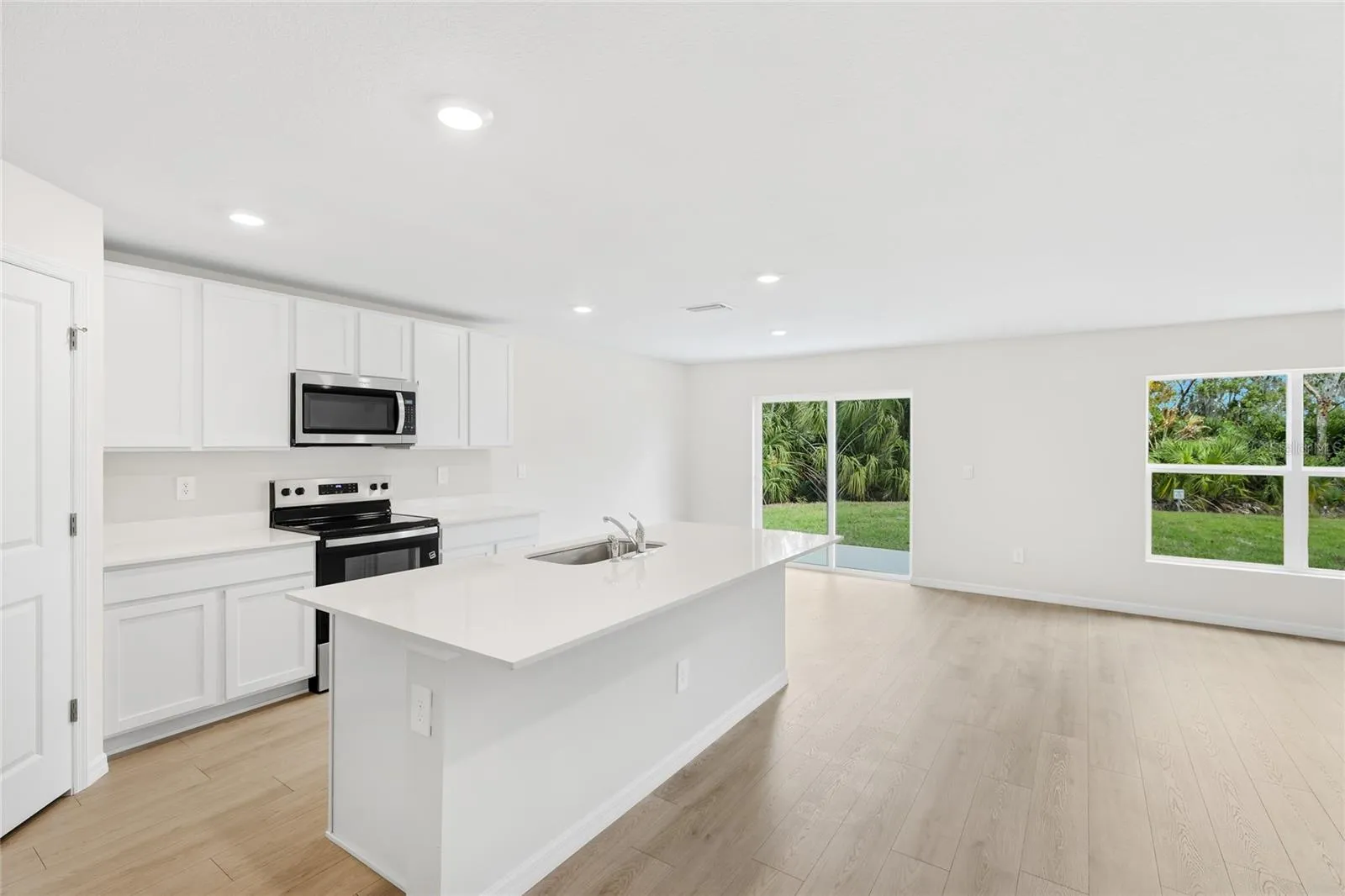 The beautifully designed open-concept kitchen features granite countertops, a large center island, and seamless flow into the dining area and family room—perfect for entertaining or everyday life.