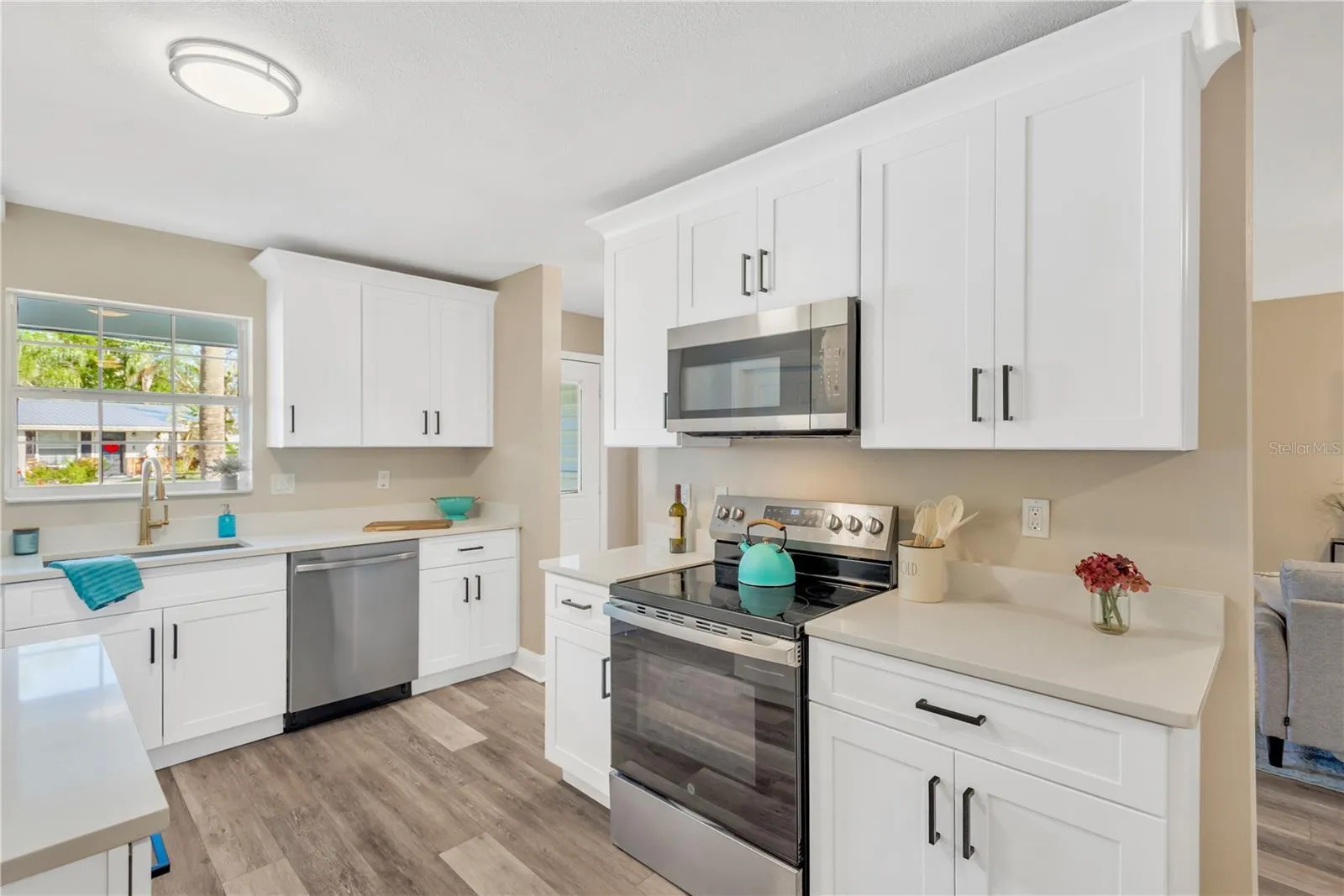 This is the one you’ve been waiting for! Located in Tampa’s highly desired Lake Magdalene area, this home offers a beautifully updated 5-bedroom, 2-bathroom sanctuary in the heart of our wonderful city. This exceptional residence greets you with a spacious floor plan designed for both style and functionality. A picture-perfect Florida front porch welcomes you home, and is the perfect place to enjoy a cup of coffee or your favorite drink. As you enter the home, tons of natural light and bright luxury plank flooring create a perfect blend of warmth and modern sophistication. The gourmet kitchen is a chef’s dream, featuring gorgeous QUARTZ countertops, stainless steel appliances, and custom ALL-WOOD cabinetry, offering a space that is as practical as it is stunning. Each bedroom provides a private haven of comfort. The master suite serves as a true retreat, showcasing a private bath with upscale finishes and design. Four additional bedrooms and a private guest bathroom mean everyone has plenty of space to spread out. A split floor plan offers tons of privacy, or a perfect place for a home office, studio, gym or playroom. Step outside to your expansive FENCED backyard – an entertainer’s paradise and a peaceful oasis, perfect for outdoor gatherings or quiet relaxation under the Florida sun. This home features a BRAND NEW ROOF, for years of enjoyment and comfort. Other great features include a covered walkway to the giant laundry space/utility room, brand new carpet, and fresh paint… all you have left to do is move in! Located in a vibrant, centrally located neighborhood, this home combines tranquil living with unparalleled convenience. Close to schools, beautiful parks, premier shopping, and easy access to major highways, this property offers the best Tampa has to offer. Discover the lifestyle you deserve where luxury, comfort, and location harmonize perfectly. Schedule your private tour today and make this exquisite home yours!