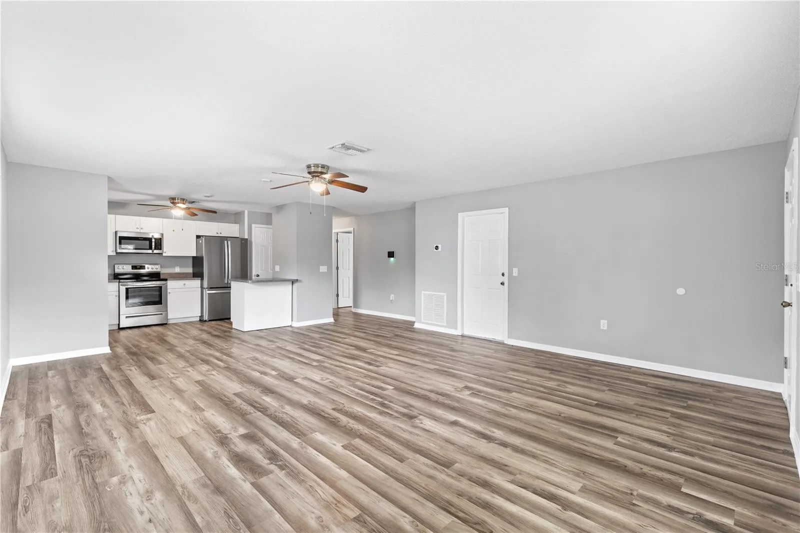 Welcome Home! Offered for sale is this beautiful newer construction home. No HOA, No CDD, No Deed Restrictions ! Built in 2021 this home offers 3 bedrooms, 2 full bathrooms, and an oversized 1-car garage ! The home features an open floor plan and a total of 1327 square feet of thoughtfully designed living space. Inside you will enjoy luxury vinyl flooring that flows throughout the main living areas. The modern kitchen is the heart of the home, featuring white shaker cabinetry, a small raised bar for extra seating and stainless steel appliances. The primary suite is complete with a spacious closet and an en-suite bathroom with a walk in shower. Two additional bedrooms provide cozy accommodations, while the second bathroom offers a tub/shower combo and a modern vanity. The large screened in front porch is perfect for enjoying the Florida weather, while the oversized 1-car garage offers added storage and convenience.