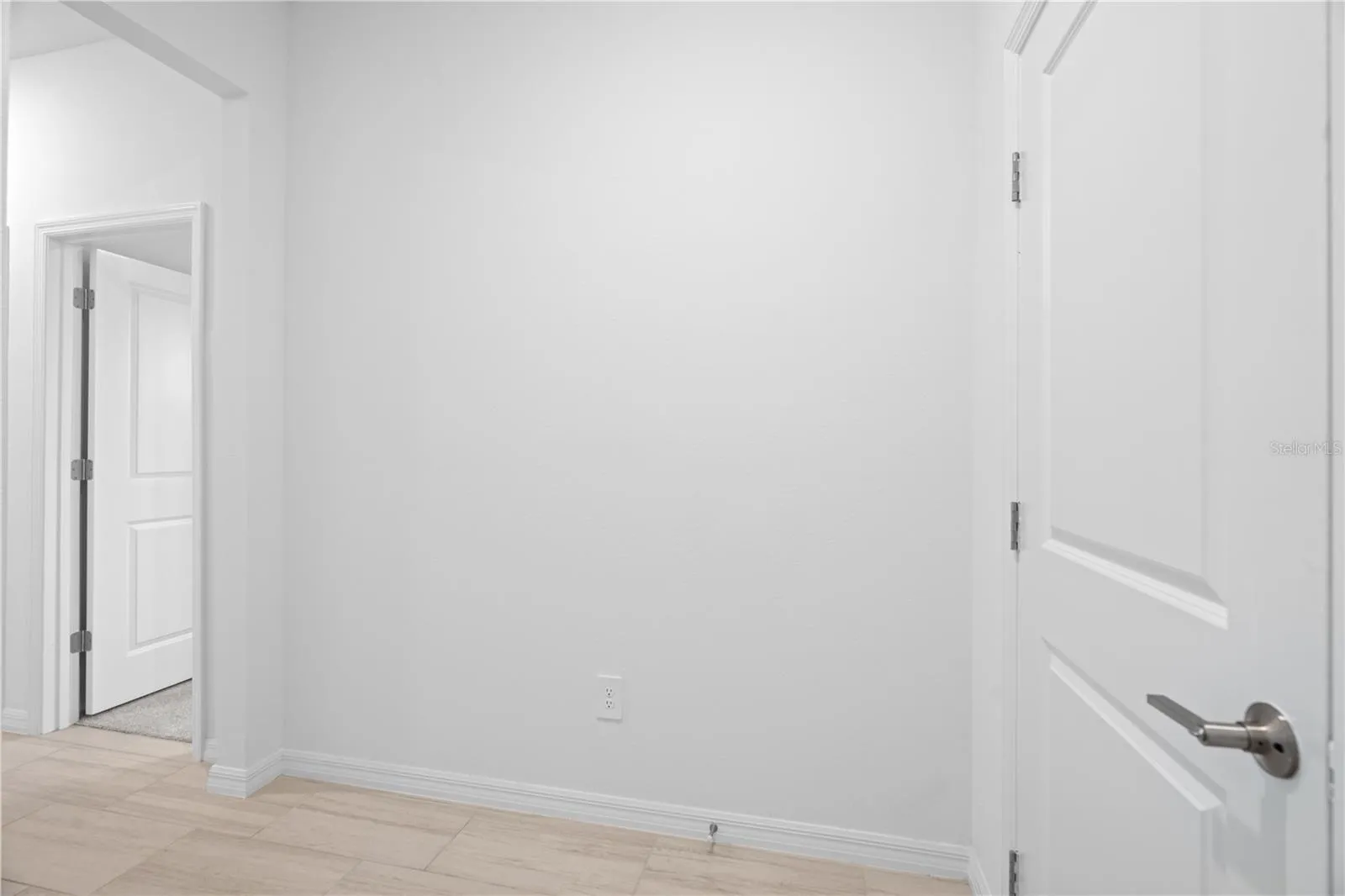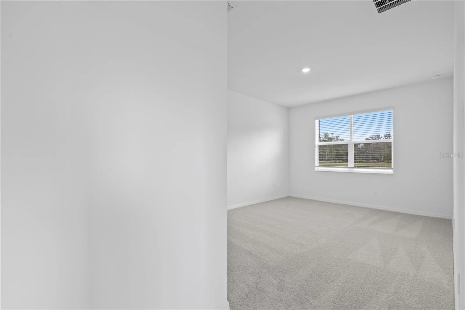 Step outside to the covered lanai and enjoy your morning coffee with tranquil lake views, or unwind in the evenings surrounded by peaceful outdoor ambiance. The owner’s suite provides a private retreat complete with its own bathroom and a spacious walk-in closet. A second cozy bedroom and a versatile flex space perfect for a home office, guest room, or hobby area are tucked away down the hallway for added privacy.