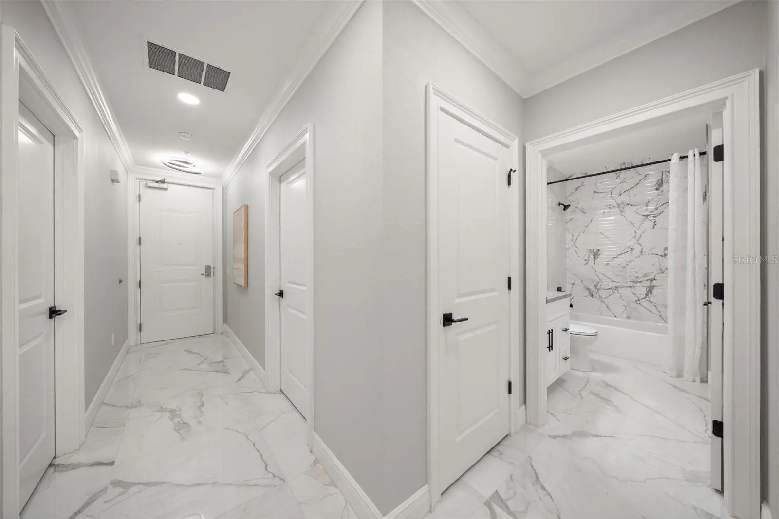 Introducing La Brisa Del Mar, a boutique luxury condominium in Clearwater’s highly sought-after Island Estates, offering refined coastal modern living along the Intracoastal Waterway with expansive water views. This move-in-ready, new construction residence showcases stunning views from expansive terraces designed for seamless indoor-outdoor living. The open-concept interior features elegant tile flooring and a beautifully appointed kitchen with quartzite countertops, a generous island, and stainless-steel appliances, anchoring the main living space with modern sophistication. Offering three bedrooms and two baths, the primary suite is a tranquil retreat with a spacious walk-in closet and a spa-inspired ensuite featuring double vanities, a private water closet, a walk-in shower with a rain-style shower head, and a corner soaking tub. Built on 110 pilings and featuring PGT impact resistant hurricane windows, this quality new construction offers exceptional peace of mind. Each residence also includes an under-building assigned parking space plus one additional unassigned space. Residents enjoy a waterfront pool and the rare opportunity to purchase a deep-water Intracoastal boat slip. Ideally located just minutes from shopping, dining, and world-famous Clearwater Beach, La Brisa Del Mar delivers private, polished waterfront living in an intimate setting.