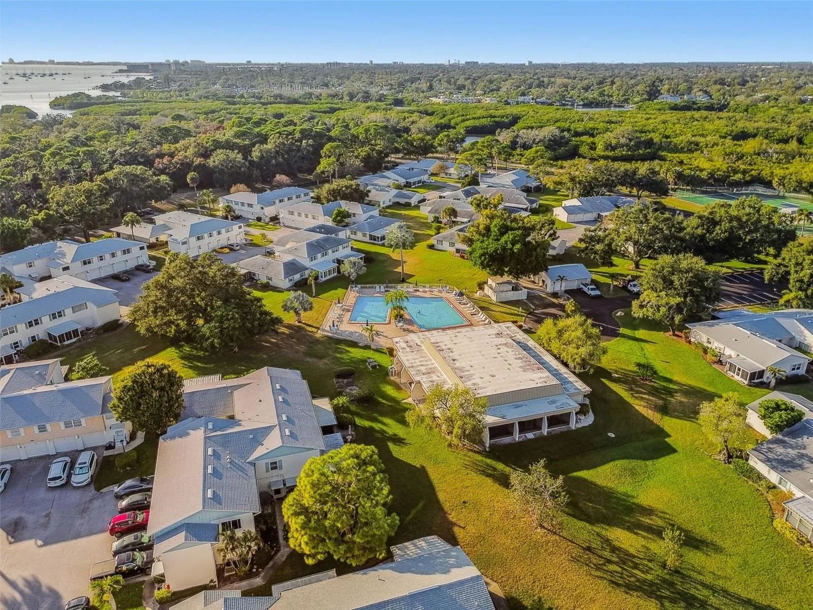 Welcome to West Shore Village, a beautifully maintained, all ages, gated community tucked away in one of St. Petersburg’s most desirable locations. This first-floor, villa-style condominium offers the rare combination of single-story living, a spacious screened-in lanai, and a private garage with direct access the unit. Located in an X non-flood zone and positioned in one of the highest, most elevated sections of the community, this unit sustained no damage from past storms, offering peace of mind that buyers value more than ever. The private garage is fully drywalled, recently serviced, and provides convenient direct access into the home, with plenty of nearby guest parking for visitors. Inside, the layout is efficient and comfortable, with a spacious bedroom filled with natural light, a large built-in closet, and a bright living space that flows seamlessly to the screened lanai, complete with privacy shades – perfect for morning coffee or quiet evenings outdoors. Upgraded electrical and plumbing add to the home’s long-term reliability. West Shore Village is an all-ages community known for its strong financial health, with fully funded HOA reserves and well-kept grounds. Amenities include a beautiful resort style pool, clubhouse, and tennis and shuffleboard courts, all within a secure, gated setting. The unit can be sold fully furnished as shown, making it ideal as a primary residence, second home, or low-maintenance Florida retreat. Conveniently located near downtown St. Petersburg, Gulfport, beaches, shopping, dining, and waterfront trails—this home offers the perfect balance of privacy, security, and accessibility.