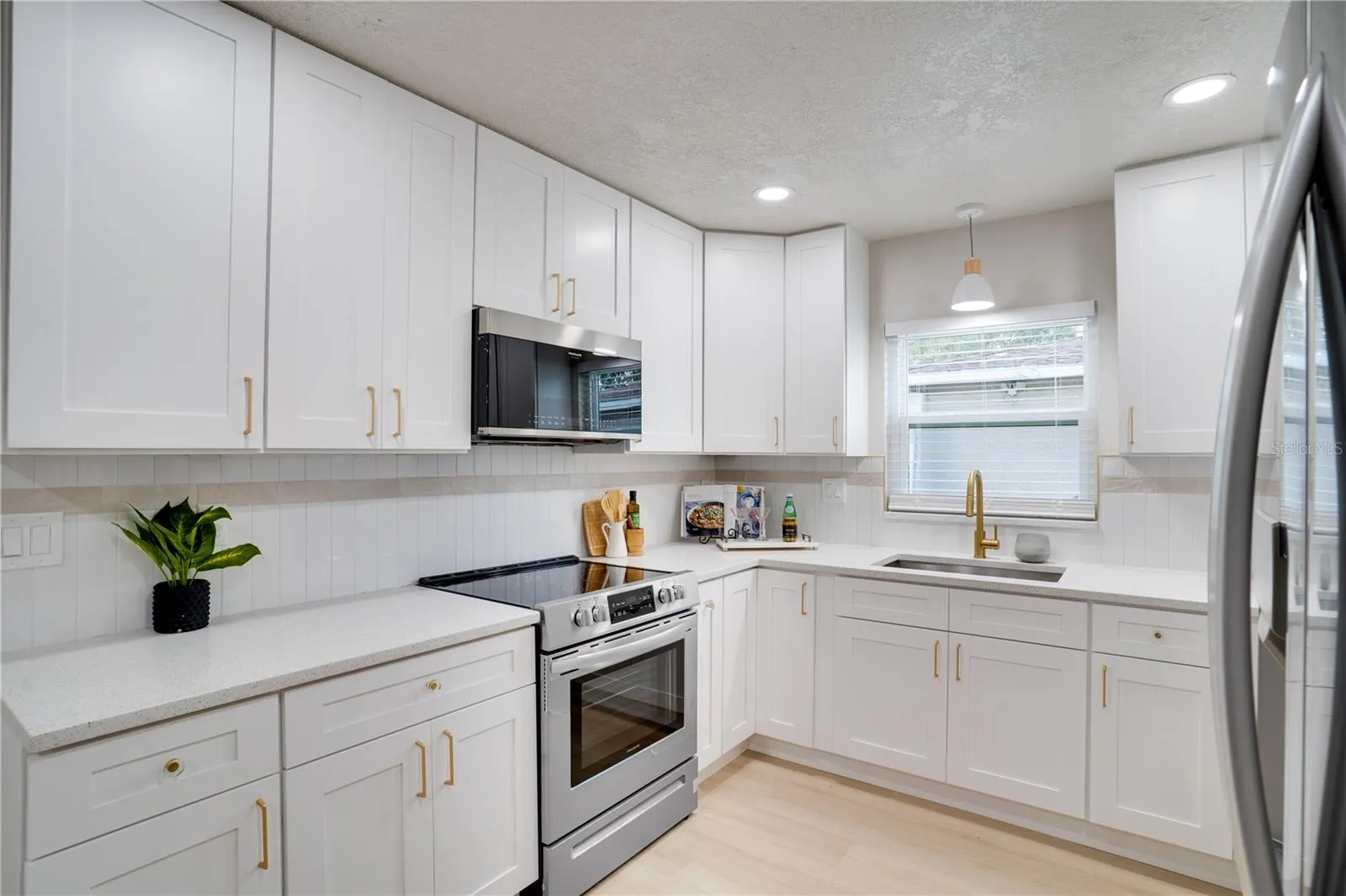 This beautifully finished 3-bedroom, 2-bath, 2-car garage single-family home in Pinellas Park offers a functional layout and stylish design throughout, featuring fresh interior and exterior paint, LVP flooring throughout, and modern bathrooms and kitchen. The spacious open-concept kitchen and dining area is a true centerpiece, showcasing stone countertops, stainless steel appliances, an eye-catching tile backsplash, recessed lighting, a peninsula with bar seating, and abundant cabinet and counter space. The split-bedroom floor plan provides added privacy, with the primary suite offering a walk-in closet and an en-suite bath complete with a tiled walk-in shower. An enclosed lanai overlooks the large backyard, perfect for relaxing or entertaining. Centrally located in the heart of Pinellas County, this home is close to parks, beaches, shopping, dining, entertainment, and downtown St. Petersburg. Schedule your private showing today and see everything this home has to offer.