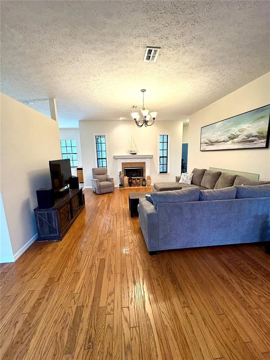 Custom-built pool home with numerous upgrades, located on a beautiful conservation lot at the end of a quiet cul-de-sac. This 4-bedroom, 2-bath residence features an oversized 2-car garage and a well-designed open-air floor plan with a fireplace in the living room. The split-bedroom layout offers privacy, with a spacious primary suite that includes a large walk-in closet. Enjoy a private backyard backing up to a conservation area, complete with a screened pool and covered porch—perfect for outdoor living. Rent includes pool service and lawn maintenance.