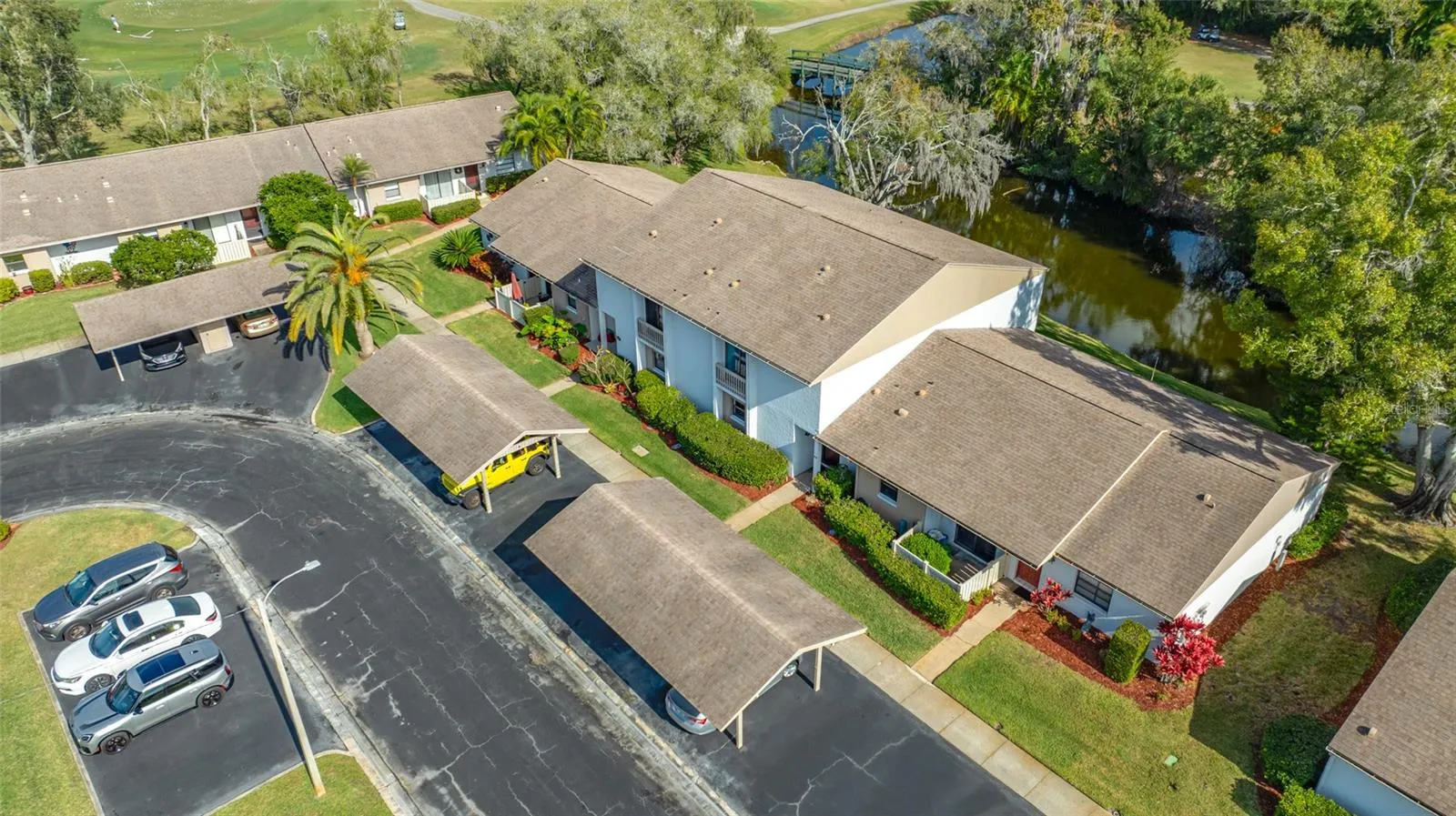 This thoughtfully constructed concrete block townhome offers over 350 square feet of screened, covered outdoor living space across two expansive lanais. Upstairs, a private Florida room opens to stunning views of the 10th hole of the Ardea Golf Course and tranquil canal, while the downstairs screened lanai provides the perfect spot to relax or entertain in the Florida breeze. The home includes a designated carport with large storage closet, plus an additional assigned space. There are also ample guest parking spaces on the island.