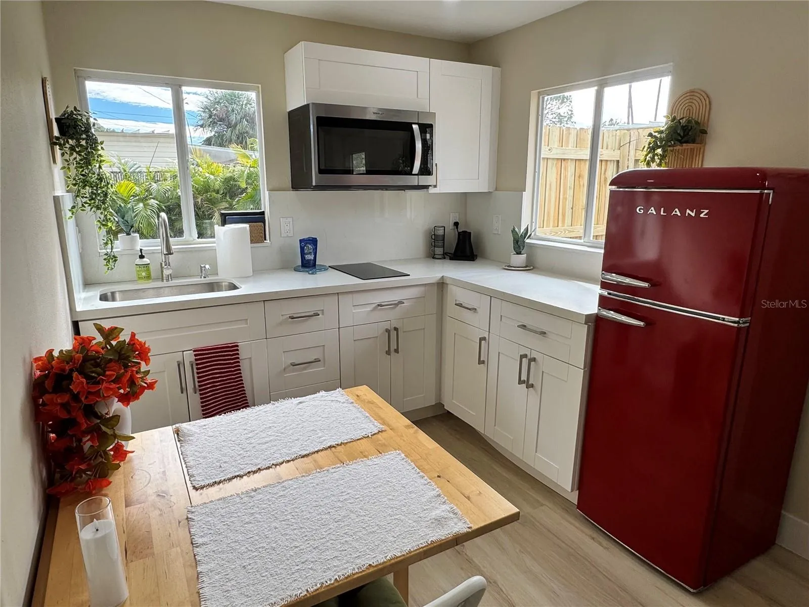 Furnished Private Guest House. Private entrance and small yard. Available now. Brand new remodel. All utilities are included in the rent, along with high speed internet. The cooktop burners are built into the countertop.