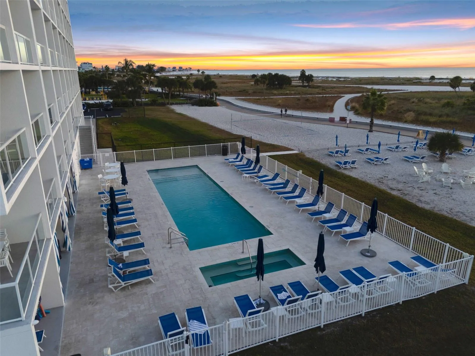Experience the ultimate blend of Luxury, flexibility, and income generating in this beautifully appointed 2-bedroom, 2-bath hotel condominium located within the sought after Ocean Club community in Treasure Island. Featuring 905 square feet of refined living space, this third-floor corner unit is a standout choice for investors and those seeking an effortless coastal retreat. With amazing sunset and ocean views, premium upgrades, and a fully turn-key setup, this residence delivers a seamless experience from day one. Loaded with natural light, the open-concept layout showcases modern finishes throughout and additional side windows, creating a fresh and inviting atmosphere. The living room connects effortlessly to the well-designed kitchen, ensuring a comfortable flow for entertaining or unwinding after a day at the beach. The split bedroom layout provides privacy for owners and guests alike, while both bedrooms feature generous closet space and serene views. Two well-appointed baths, complete with contemporary fixtures, elevate the condo’s polished appeal. Every detail has been considered to maximize ease and convenience. This beautiful unit includes a full-size washer and dryer, hurricane-impact windows, and comes fully outfitted with furniture, cookware, silverware, bedding, towels, and more—allowing you to settle in immediately. A dedicated covered parking space adds another layer of practicality. Designed for both enjoyment and investment, the Ocean Club’s flexible rental program provides multiple options for generating income while still allowing owners to enjoy up to 30 consecutive days of personal use. With everything already in place, this property is ready to perform as a high-demand rental from the outset. The Ocean Club is known for its resort-style amenities and exceptional service. Residents and guests enjoy 24-hour concierge, housekeeping, management and direct access to the Ocean Club Bar & Grill. Spend your days at the private beach, relax by the private pool, or take advantage of direct access to biking paths, walking trails, beach activities, and volleyball court. A private rooftop terrace offers panoramic ocean vistas—perfect for sunset gatherings or quiet moments above the shoreline. Additionally, there’s a fully state of the art fitness center and sports bar. This community is also pet friendly, making it welcoming for all. This turn-key condo delivers an unparalleled opportunity in one of the area’s most desirable beachfront destinations. High occupancy average generating nightly rental opportunity. Indulge in effortless ownership, world-class amenities, and breathtaking ocean views—all in one exceptional package.
