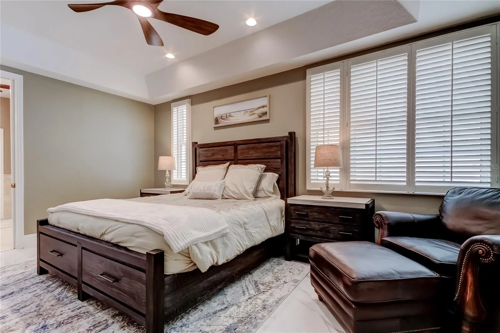 - Ceiling Fans(s), Open Floorplan, Thermostat, Walk-In Closet(s), Eat-in Kitchen, Primary Bedroom Main Floor, Split Bedroom, High Ceilings, Stone Counters