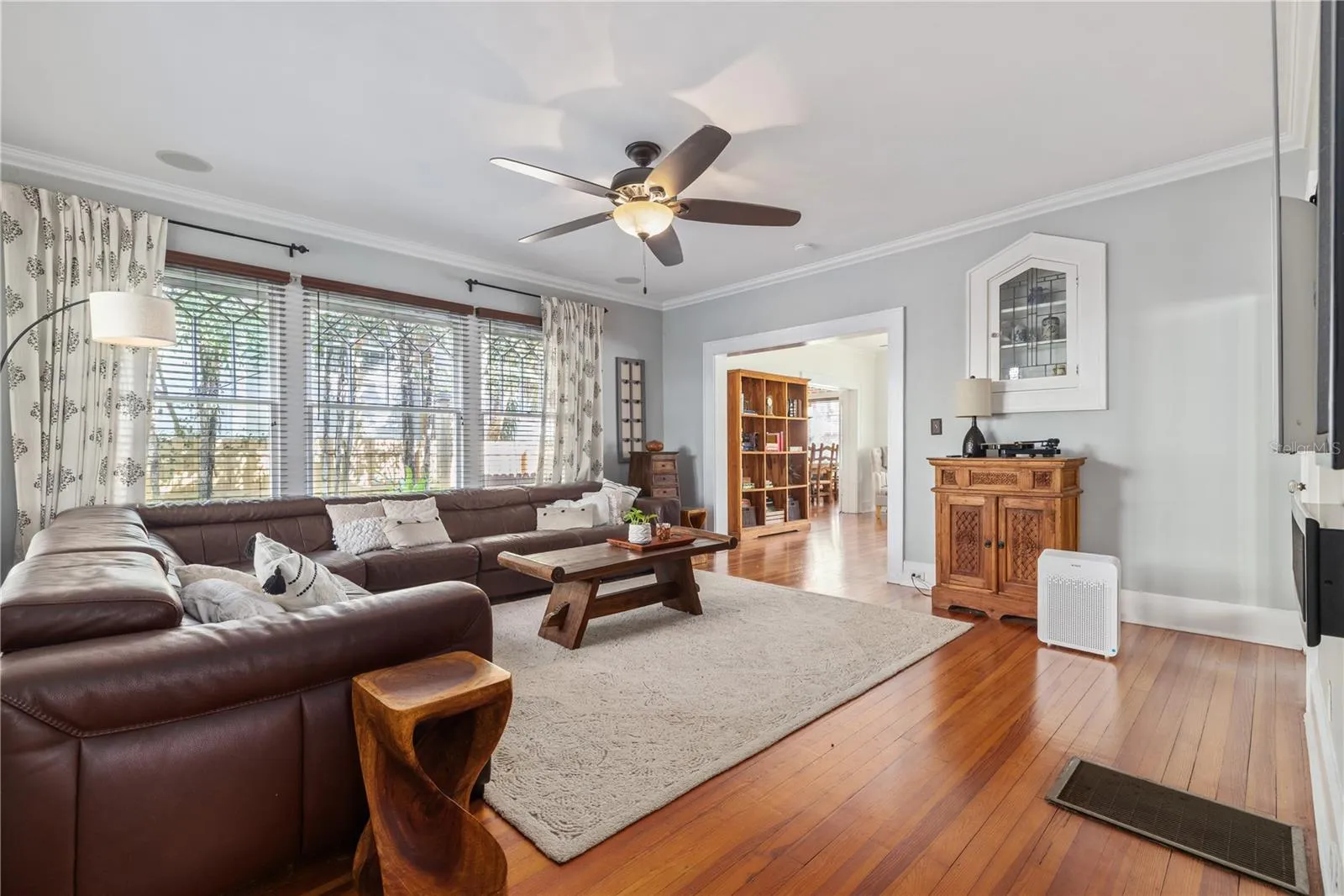 Known locally as The Cake House, this timeless Mediterranean masterpiece is one of Old Northeast’s iconic historic residences, a century-old architectural gem originally designed by the same architect behind Dunedin’s famed Fenway Hotel. On a prized corner lot along picturesque Beach Drive, the home blends Havana-inspired design and 1920s craftsmanship with thoughtful modern luxury updates throughout. Showcasing original interior and exterior brick, refinished hardwood floors, detailed millwork and a distinctive pagoda-style roofline, the property radiates warmth, history and sophistication. Inside, a light-filled tranquil sunroom opens to flexible dining and living areas pre-wired for audio/visual, ideal for entertaining. The main level includes a formal dining room, and a full butler’s pantry with bar functionality off the chef’s updated kitchen, featuring a movable island and period details that honor the home’s heritage. The enclosed laundry room includes a washer and dryer, with an adjacent mudroom and indoor tankless water heater. The luxurious primary suite is a sanctuary of elegance, complete with crown molding, a California closet system, dual vanities, and an oversized walk-in shower clad in Calacatta marble with opulent fixtures and abundant natural light. Guest accommodations are equally inviting, with spacious bedrooms, dual closets, and beautifully updated baths that harmonize with the home’s character. Outdoor living is elevated with a private Mediterranean-style courtyard featuring a custom wood-fired kitchen, gazebo dining pavilion and restored original deck pillars surrounded by lush new landscaping. Every detail invites relaxation and connection. Additional highlights include updated electrical and copper plumbing, new under-home ductwork (2024), a newly installed CPVC water main to the street and ongoing air conditioner maintenance for peace of mind. The detached two-car garage accompanies a fully equipped one-bedroom, one-bath ADU with kitchen, washer/dryer, and private entry, ideal for guests, extended family or income opportunity. Set on a 7,920-square-foot lot in one of St. Petersburg’s celebrated neighborhoods, 1311 Beach Drive NE is a rare blend of architectural authenticity and modern livability. Every improvement has been permitted, curated and meticulously maintained, offering a once-in-a-generation opportunity to own one of Old Northeast’s beloved landmarks.