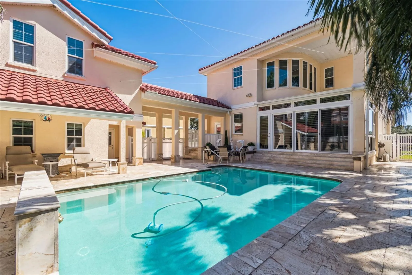 Experience Luxury Waterfront Living in St. Petersburg at 4707 Skimmer Way – a meticulously maintained and fully upgraded 4,950 sq. ft. residence in one of the area’s most desirable gated communities. This move-in ready coastal home combines modern efficiency, timeless elegance, and peace of mind with every major upgrade complete. Interior features include plantation shutters throughout, an expansive open-concept layout, two master suites with spa-style bathrooms, gas fireplaces, a gas tankless water heater (2022), and a detached garage apartment with full kitchen, bathroom, and new A/C (2023) – perfect for guests, in-laws, or rental income. Major improvements include a new tile roof (June 2025), top-of-the-line Trane A/C system (Oct 2023) with 10-year warranty, all-new ductwork (2025), spray foam insulation (2024), impact windows (2017), and a whole-home Kubota diesel generator with refreshed 180-gallon tank (2025) capable of powering the home for 2–3 weeks. Outdoor living is unmatched with a resurfaced PebbleTec pool and upgraded pool deck (2022), travertine walkways, driveway, and porches (2019), professional landscaping with custom lighting, a spacious front porch, and new LED exterior lighting and underground downspout system (2025). The extended 5-ft garage (2022) features a hurricane-rated door, ample storage, and a dedicated workshop/storage room, along with a water softener system for added comfort. Located in a premier gated waterfront community, HOA dues of $418/month include Spectrum cable and internet plus front and side yard maintenance. Just minutes from downtown St. Petersburg, world-class beaches, marinas, dining, and entertainment – this is luxury living at its finest.