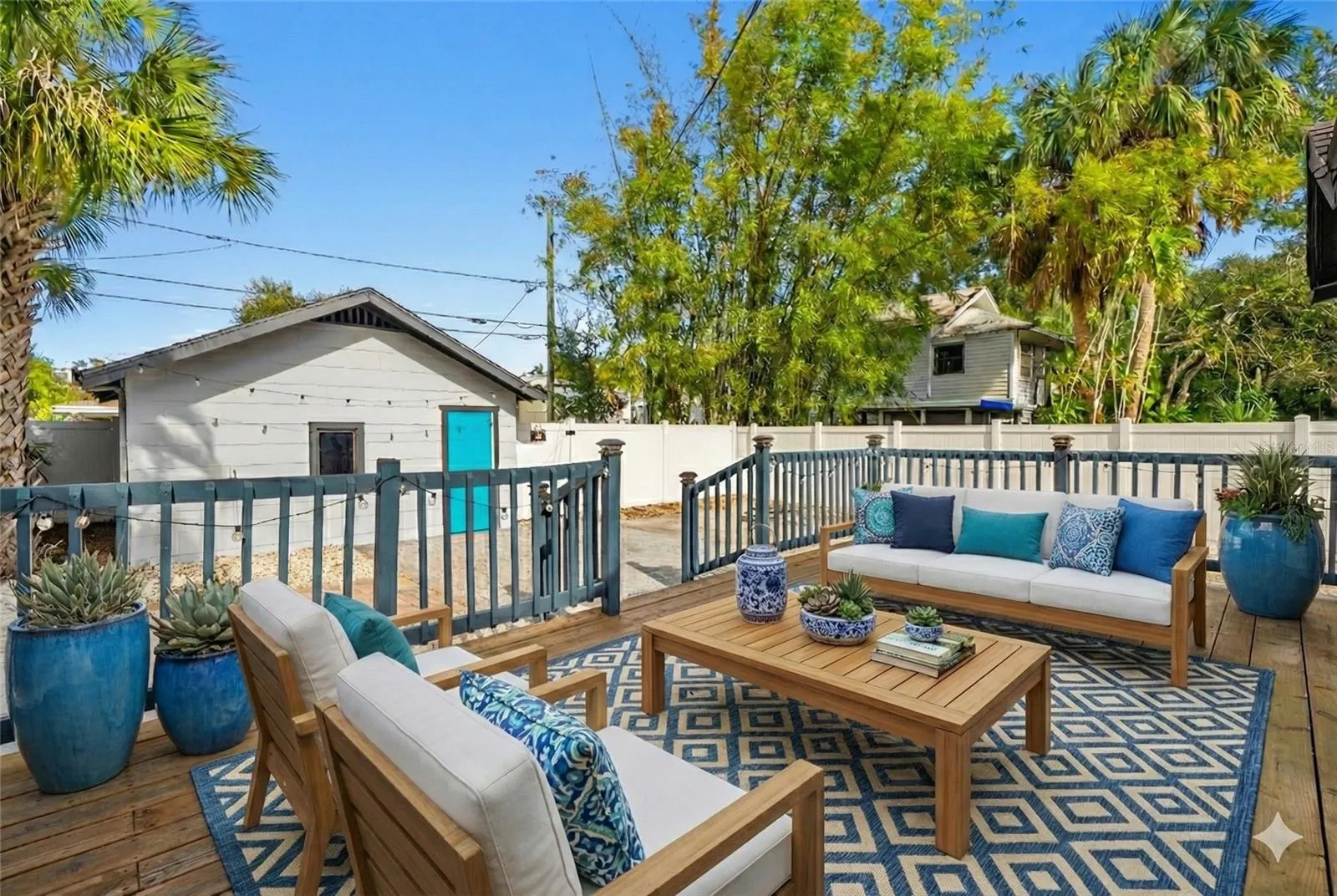 One or more photo(s) has been virtually staged. Welcome to Historic Old Northeast living at 313 23rd Ave N! This beautifully maintained 3-bedroom, 2-bath home blends classic 1938 charm with modern updates in one of St. Pete’s most walkable neighborhoods. Step inside to a welcoming foyer with a versatile nook, perfect for a home office, storage, or creative workspace. Original wood floors and abundant natural light flow throughout the home, creating a warm, inviting atmosphere. The living room features a decorative fireplace that adds timeless character. To the left, the front bedroom offers its own bonus nook ideal for a reading corner or workspace. The completely updated kitchen showcases stone countertops, stainless steel appliances, and plenty of storage. A convenient laundry room leads off the kitchen for easy access. Down the hallway, you’ll find two additional bedrooms. The guest bath features a tub/shower combo, while the primary suite includes an ensuite bathroom with dual sinks and a stand-up shower. The backyard is an entertainer’s dream! The expansive deck, accessible from both the primary bathroom and laundry room, overlooks a beautifully landscaped yard with white vinyl fencing, a firepit, paved pathways, and a convenient dog door for your furry friends. The property also includes a 1-car garage with Tesla charger and an additional paved parking pad off the back alley. Old Northeast delivers the best of St. Pete living. You’re minutes from the vibrant 4th Street corridor with its eclectic mix of local restaurants, coffee shops, and boutiques. Publix and Whole Foods are both within a 5-minute drive. Downtown St. Pete is less than 10 minutes away, offering world-class dining, the Museum of Fine Arts, Mahaffey Theater, and St. Pete Pier. The Tampa Bay waterfront, Vinoy Park, and North Shore Park are just a short bike ride away. Gulf beaches are less than 20 minutes from your door, and I-275 access makes commuting to Tampa easy. Rent is $4,500 per month and tenants set up utilities in their name for direct control and flexibility. Renters insurance is required at $45 per month through our program Beagle. Application fee is $65 per adult (18+) and we run background checks, credit checks, and verify work and rental history. Upon approval, a one-time $100 tenant processing fee applies. First month’s rent and security deposit of $4,500 each secure your move-in date. Pet-friendly with up to 3 pets welcome! $300 pet fee per pet includes professional duct cleaning at move-out, plus $25 per month pet rent per pet. All applicants complete pet screening through petscreening.com. Schedule your showing today!