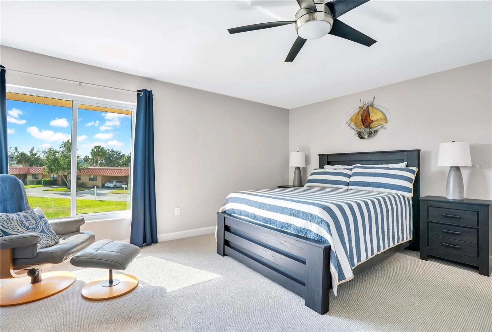Each day begins with the soft shimmer of Palma Sola Bay, where changing light, passing clouds, and quiet movement on the water create a living canvas just beyond your windows. Located only three miles from the legendary beaches of Anna Maria Island, this immaculate, turn-key furnished waterfront residence offers a rare blend of coastal drama, privacy, and effortless luxury.