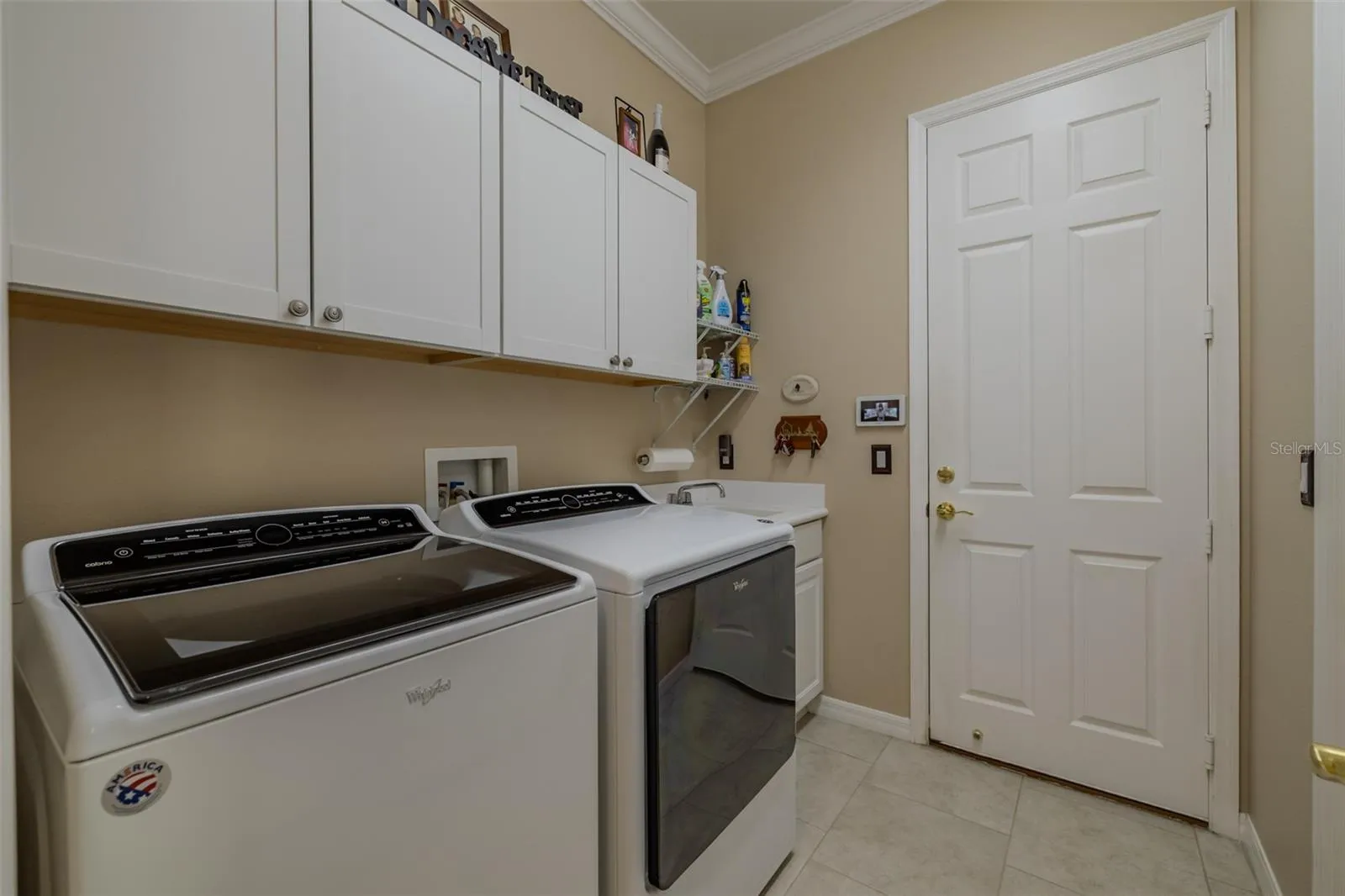 Immaculate landscaping on all four sides adorns this 2,723SF GL Homes built Vizcaya features three bedroom with ensuite bathrooms, a den, an open floorplan featuring a great room, kitchen, dinette, and a powder room for day visitors. Enter through the screened-in portico and be welcomed by a stunning etched glass double French door. Step inside the expansive foyer and enjoy your view of the open floorplan. 18”x18” porcelain tile set on a waterfall pattern finished with large 51/4” baseboards grace the floors, and the walls meet the ceilings with custom crown molding. Right of the front door is the 3rd bedroom that features a walk-in closet with built-in shelving, large windows with plantation shutters, a lighted ceiling fan, and a full ensuite bathroom. Bedroom 2 also features a beautiful ensuite bathroom, a lighted ceiling fan, and a walk-in closet. The spacious primary bedroom is 19’x16’ with a 10’-to’11’ tray ceiling, and it has a three-wall bay window. Two generously sized walk-in closets with custom built-ins flank the hallway leading to the ensuite. This ensuite features two separated vanities with quartz counters, a garden tub, a walk-in shower, a water closet for the commode, and a linen closet. All bedrooms have porcelain tile with a wood plank motif. The spacious great room anchors the Vizcaya’s open floorplan. A large 10’-to-11’ tray ceiling with a MINKA-AIRE Artemis 58” fan in a distressed KOA finish with tinted opal glass and six recessed lights crowns the generous 26’x20’ great room that also has a three-panel 12’ wide sliding glass door with powered roll down shades leading to the backyard oasis. The gourmet Chef’s kitchen features a counter-height breakfast bar, a single-basin sink with a reverse-osmosis faucet, solid wood cabinetry with soft close doors, lower cabinets with pot drawers topped with quartz counters which in turn are accented by a mosaic glass backsplash, stainless-steel appliances, a counter-cooktop with externally vented range hood, and wall-mounted oven and microwave. This kitchen basks in natural light and has plenty of space for the Sous-Chef too. Adjoining the kitchen is a casual dining area, with a SPUTNIK chandelier, overlooking the backyard oasis that will be the perfect space to enjoy daily or intimate meals. It also has an 8’ wide pantry with eight levels of storage shelving. Adjoining the kitchen is a formal dining room that will comfortably accommodate 10 persons. Discretely removed from the open floorplan is a powder room for visitors. The backyard oasis faces West and is the perfect space to enjoy glorious sunsets. It features an extended lanai with a powered hurricane shade, and a 10’ screen room to bask in the Sun. A full-width driveway leads to the air-conditioned & heated extended garage which is big enough to accommodate 3 SUVs, and it has epoxied floors, insulated doors with belt-drive openers, overhead and wall mounted cabinets. Professionally landscaped on all sides, Your environmental comforts are assured with a 360o outdoor and indoor security camera system with no monthly subscription, a 4-ton HVAC with Air Oasis filtration, a 200 AMP electrical panel with an Eaton Complete Home Surge Protector, a 50amp dual fuel heavy-duty generator, a DeLonghi Pinguino portable air conditioner, full-house gutters, and all windows have hurricane resistant accordion shutters. Located in Valencia Lakes, Tampa Bay’s premier 55+ Active Adult community, this home is guaranteed to exceed your needs.