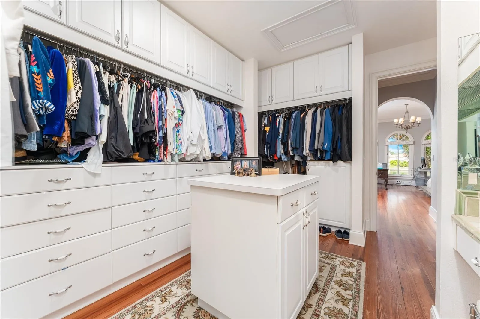 - Elevator, Crown Molding, Thermostat, Walk-In Closet(s), Eat-in Kitchen, High Ceilings, Stone Counters, Other, Solid Wood Cabinets, Tray Ceiling(s), Wet Bar, Built-in Features, PrimaryBedroom Upstairs