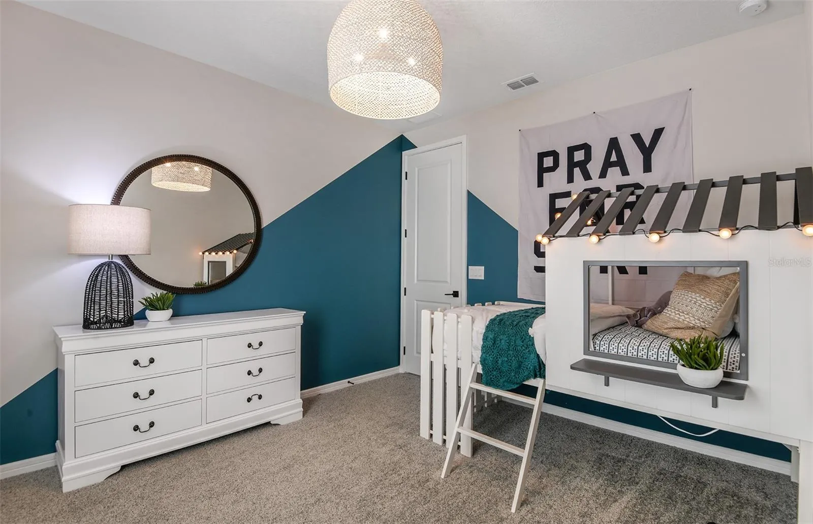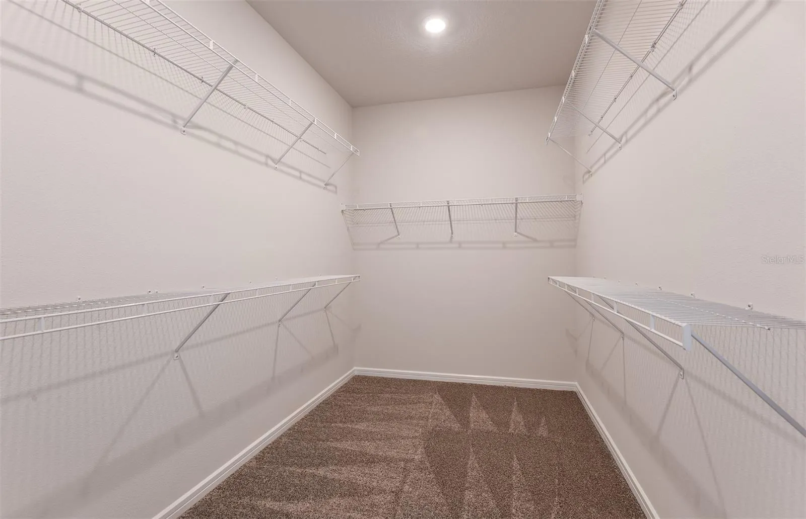 The Owner’s bath has upgraded cabinets and quartz countertops, dual sinks, and a walk-in shower with heavy glass door. Secondary baths also have upgraded cabinets with quartz countertops. There is luxury vinyl plank flooring in the main living areas and flex room, 18”x18” tile floor in the baths and laundry room, and stain-resistant carpet in the bedrooms and loft.