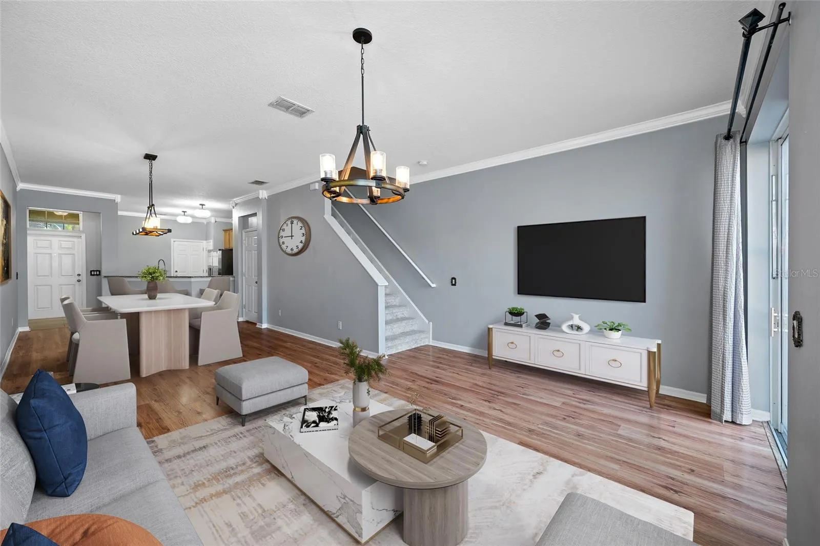 One or more photo(s) has been virtually staged. Welcome home to this beautiful MAINTENENCE FREE TOWNHOME located in the desirable and GATED South Hampton community in the Westchase area! This lovely home has 2 bedrooms, 2.5 bathrooms, PLUS A LARGE FLEX SPACE that can be used an an office, play area, (or whatever you need it for) as well as a one car garage. You will love the PEACEFUL VIEW OF THE POND and nature from your back patio in this home. South Hampton is surrounded by conservation and beautiful ponds throughout, making it a very desirable community. As soon as you enter the home, you will appreciate the OPEN FLOOR PLAN and great use of space. The kitchen is spacious and has BRAND NEW 24X24 PORCELAIN TILE, with 42″ wood cabinets, granite counter tops with a BREAKFAST BAR, stainless steel appliances, pantry, and space for a breakfast nook. Luxury laminate flooring throughout the downstairs great room coupled with crown molding and beautiful updated light fixtures give the dining and living space a more casual but elegant feeling. The sliding glass doors out to the patio, provide lots of natural light in the downstairs. There is also a half bath on the first floor for added convenience. Retreat upstairs to your private bedrooms and loft/flex space, all with BRAND NEW CARPET installed. SPLIT FLOOR PLAN with the 2 bedrooms on separate sides of the bonus flex space. Large Primary bedroom suite featuring double closets, a beautiful chandelier fan, and double vanities in the bathroom with a walk in shower. Amazing bonus area – perfect for an office, playroom, or upstairs family room with dual closets providing lots of extra storage! The 2nd bedroom is a nice size with 2 windows, and is right next to another full size bathroom with a large tub and vanity. The laundry room with INCLUDED WASHER/DRYER is located on second floor for convenience as well, and BRAND NEW HOT WATER HEATER INSTALLED. A well thought out floor plan, makes for easy breezy convenient living. That combined with a great community with a pool and 2 playgrounds to enjoy in your leisure time, and EXCELLENT A-RATED SCHOOLS nearby, just makes this a great choice for your new home! The Westchase area has easy access to both sides of the bay, beaches, close to major shopping, fun main street restaurants, and lots of activities! Only 20 mins to Tampa International airport makes for easy traveling! Come and see what a great place this would be to call home!