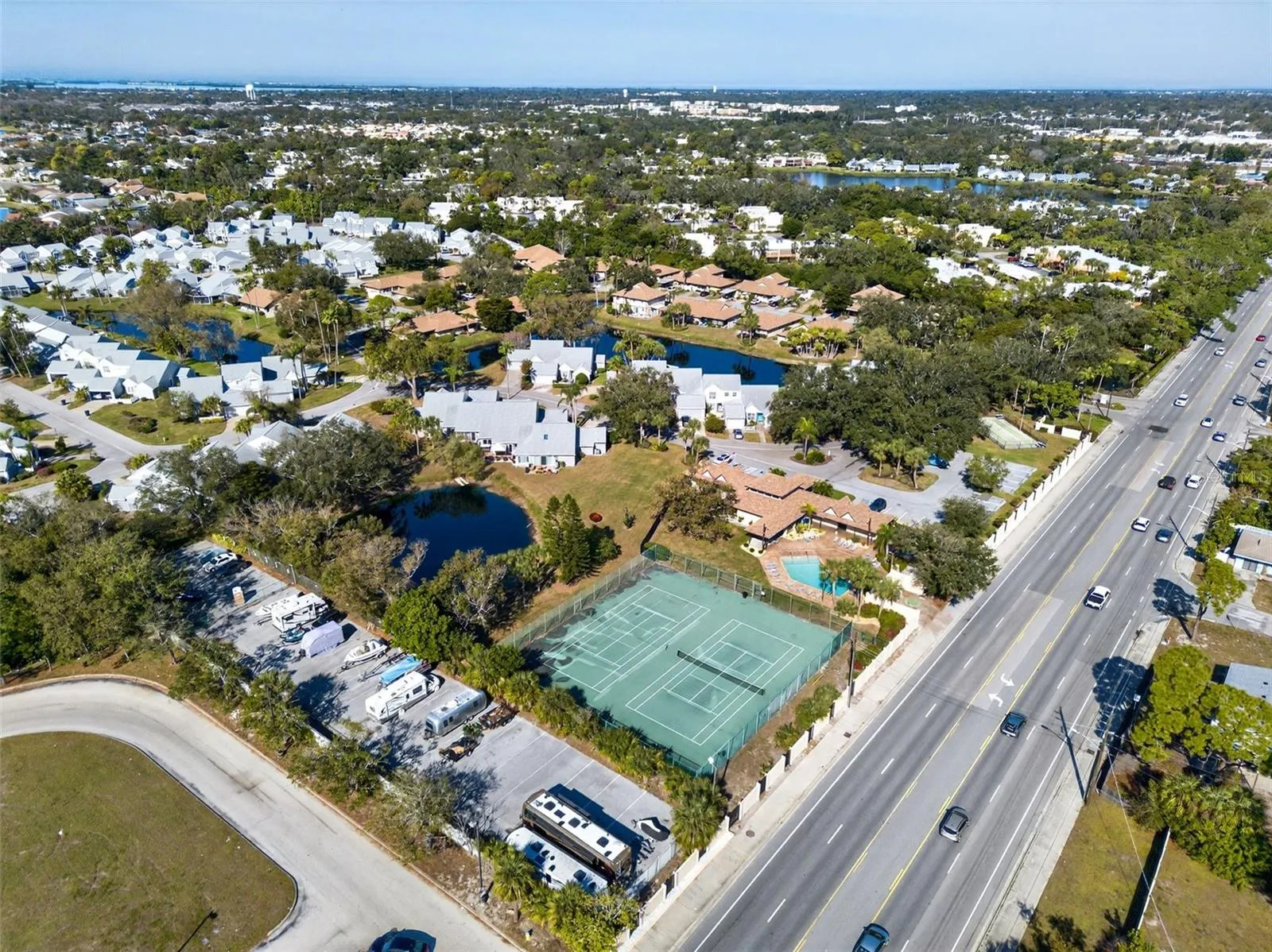 Welcome to this RARE LAKEFRONT TWO-STORY CONDOMINIUM located within the highly sought-after Southwinds at Five Lakes community, offering an exceptional blend of comfort, convenience, and coastal elegance. Ideally situated near IMG Academy, the world’s most advanced sports and educational institution, the new local favorite Detwiler’s Farm Market, Sarasota-Bradenton International Airport (SRQ), and just minutes from the world-renowned white sandy beaches of Anna Maria Island, this prime location delivers the best of Florida living. This meticulously maintained and tastefully updated residence features a light and airy interior with three bedrooms and three bathrooms, soaring cathedral ceilings, a striking shiplap statement wall, and breathtaking lake views enjoyed from the screened-in patio. With PGT HURRICANE IMPACT WINDOWS throughout, this home sustained no hurricane damage, and the exterior is currently being freshly painted. The property is offered FULLY FURNISHED with coastal premium furnishings, making it truly move-in ready. The elegant eat-in kitchen is thoughtfully appointed with stainless steel appliances, granite countertops, and an under-sink REVERSE OSMOSIS WATER FILTRATION SYSTEM—perfect for both everyday living and entertaining. The spacious second-floor suite serves as a private retreat, featuring a large bedroom, oversized closet, en suite bath, hardwood flooring, and a versatile den or office space ideal for guests or a refined home workspace. Additional highlights include a spacious TWO-CAR GARAGE with laundry area, generous storage, and a whole-house water softener. The maintenance fee provides exceptional value and includes cable, internet, exterior building maintenance, pool and common grounds maintenance, insurance, lawn care, irrigation, pest control, and roofing. The community offers resort-inspired amenities featuring two sparkling pools, one heated for year-round use, pickleball and tennis courts, shuffleboard, and convenient RV or boat trailer parking available for a small additional fee. A rare opportunity to own a beautifully appointed lakefront condo in one of the area’s most desirable communities—schedule your private showing today before it’s gone!