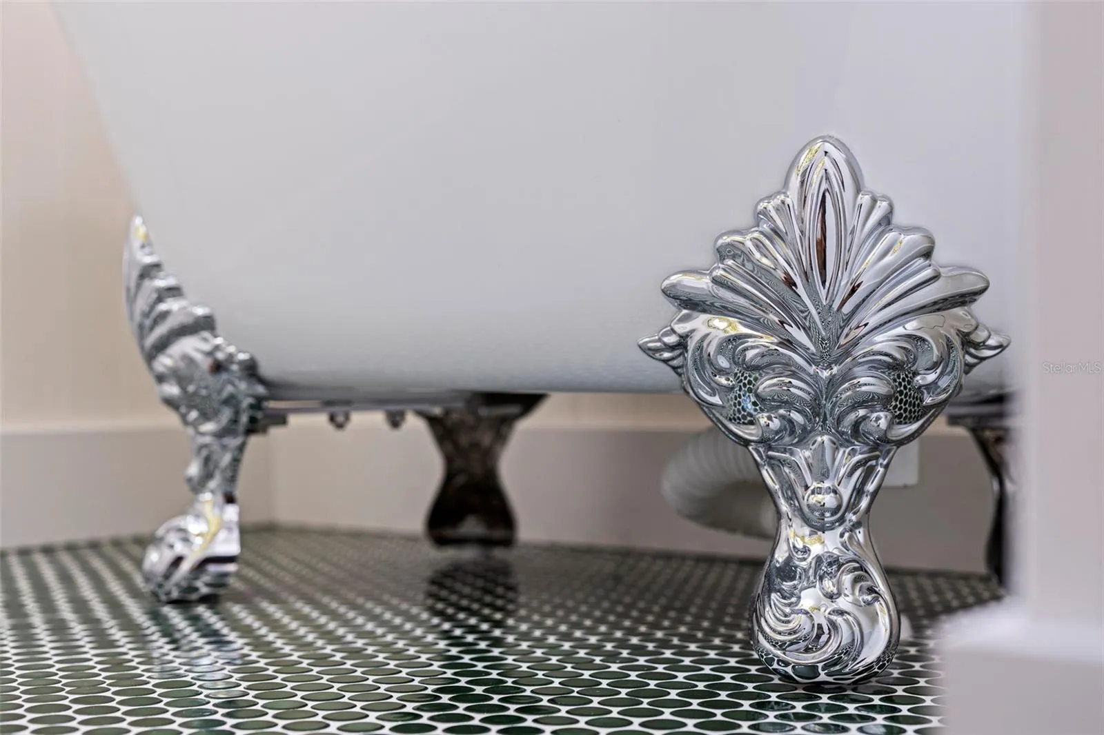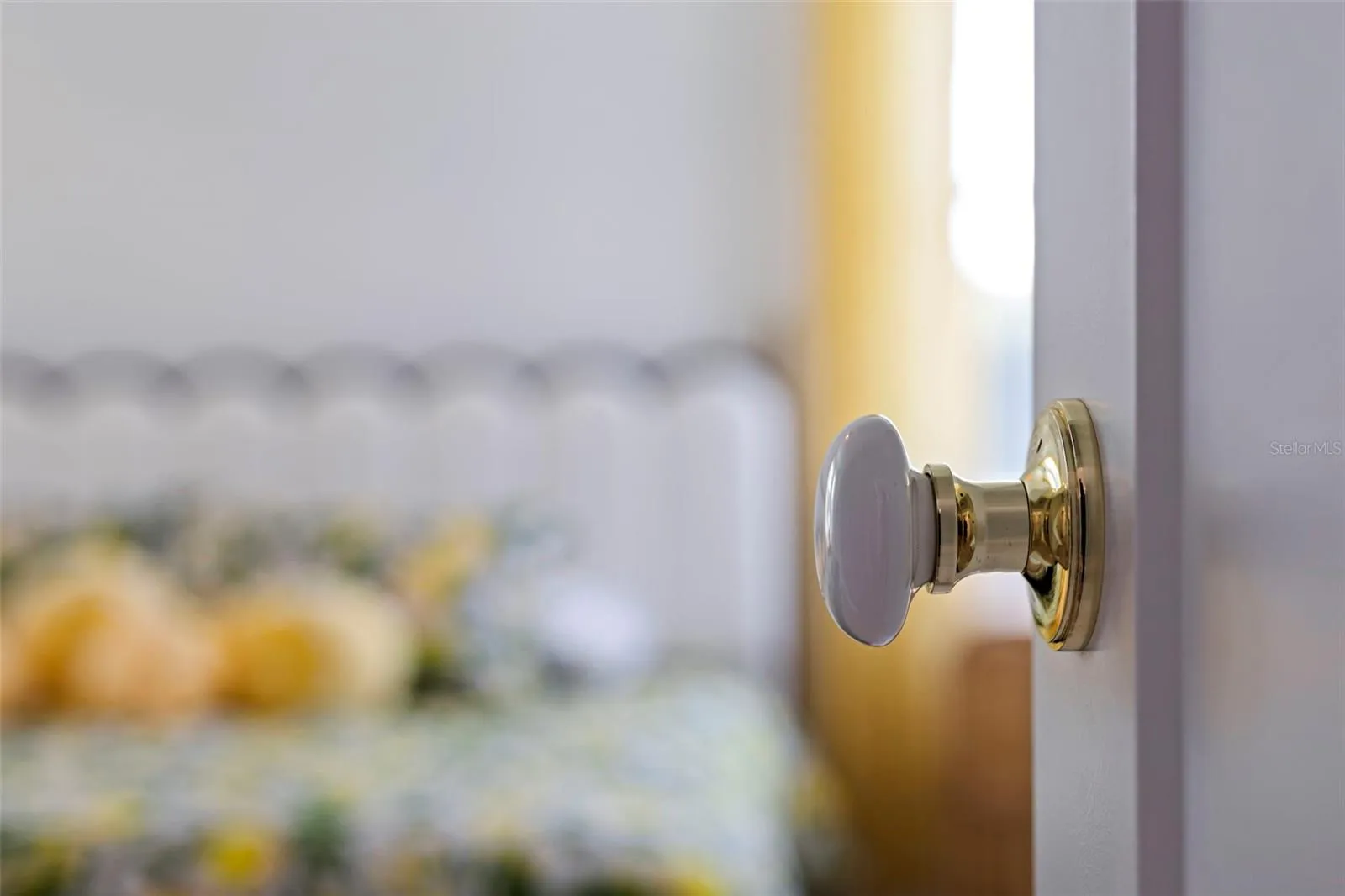 Major updates include new HVAC, plumbing, electrical, and hurricane-rated windows, offering modern peace of mind. Design highlights include custom recycled glass and porcelain tile, Kingston Brass vintage-style hardware, hand-painted wallpaper, statement lighting, and warm acacia butcher block countertops.