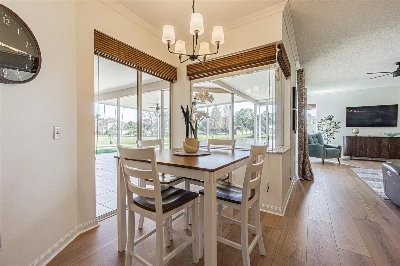 SERENE POND VIEWS in this Stunning WESLEY CHAPEL 4-bedroom, 2-bathroom home with a 3-car garage, nestled in the established Northwood community in Sunny Florida! Positioned on an oversized lot at the end of a peaceful cul-de-sac, this property offers a tranquil, natural POND view with serene surroundings. As you enter, you’ll be welcomed by an open and inviting main living and dining area, complete with new LVP floors, crown molding, and neutral interior painted color schemes that create an inviting ambiance. The spacious gathering room is ideal for entertaining, with sliding doors to the expansive screened lanai to extend your entertaining and relaxation space! Arched entryways and built-in shelving add charm and character throughout the home. The chef’s kitchen is a true highlight, featuring 42” white cabinets with crown molding, stainless steel appliances, a large pantry, and abundant counter space for meal preparation. The breakfast bar with pendant lighting is perfect for casual dining, while the adjacent dinette, surrounded by windows, offers breathtaking views of the lush landscape. The luxurious primary suite is your personal retreat, with direct access to the screened-in patio through sliding doors. Enjoy dual walk-in closets, dual sinks, a vanity space, a garden tub, plus an oversized shower, and a private water closet—everything you need to unwind after a long day. Rest Easy on your covered and screened extended patio, where you can relax and take in the peaceful pond view in complete privacy. Watch the birds, ducks, fish and turtles in this natural setting offering a calm breeze. With access from three rooms, this outdoor space is ideal for both entertaining and enjoying the Florida lifestyle! The property is set on a large lot with privacy landscaping and ample space between neighbors, offering a perfect mix of seclusion and space. Updates include ROOF and Water Heater replaced in past 2 years, New LVP Floors ($14,000), Upgraded lighting and ceiling fans, Garage interior painted and Staged Furniture in home is Negotiable! Enjoy the Community amenities including the clubhouse with activities, community pool, playground, tennis courts, and volleyball courts. Conveniently located near premier shopping and dining, including the nearby premium outlet mall, Wiregrass Mall, restaurants, the Grove, Krate, dueling pianos, movie theater, Pop stroke and mini golf to name a few. This home is also just minutes from USF, I-75, and only 35 minutes from Tampa International Airport. Sports fans and concert goers will love the easy access to major venues. This home truly has it all—don’t miss out on the chance to make it yours… CALL today!