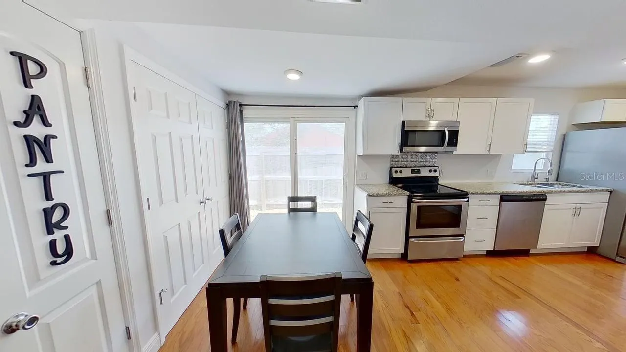 Welcome to this charming 3-bedroom, 2-bathroom home nestled in the tranquil Bayview neighborhood of St. Pete. Step into an inviting open floor plan with hardwood floors throughout, creating a warm and welcoming atmosphere. The split bedroom layout ensures privacy, with the master bedroom spacious enough for a king-size bed. The master bathroom features an updated tile shower and a large vanity, while the guest bathroom boasts a spacious clawfoot tub and shower. The kitchen is a delight with white shaker cabinets, granite countertops, and stainless steel appliances, perfect for meal preparation and entertaining guests. The convenience of indoor laundry adds to the home’s practicality. Recent updates include a 2021 roof, a 2023 AC unit, and a newer tankless water heater, ensuring energy efficiency and comfort. Outside, enjoy a recently sodded yard with lush green grass, fully fenced for privacy, and featuring a cozy firepit area for outdoor gatherings. Relax on the screened-in front porch or utilize the large storage shed for outdoor tools and equipment. This home offers a perfect blend of modern updates and classic charm in a serene neighborhood setting. Don’t miss the opportunity to make this your new home in Baywood. Schedule your showing today!