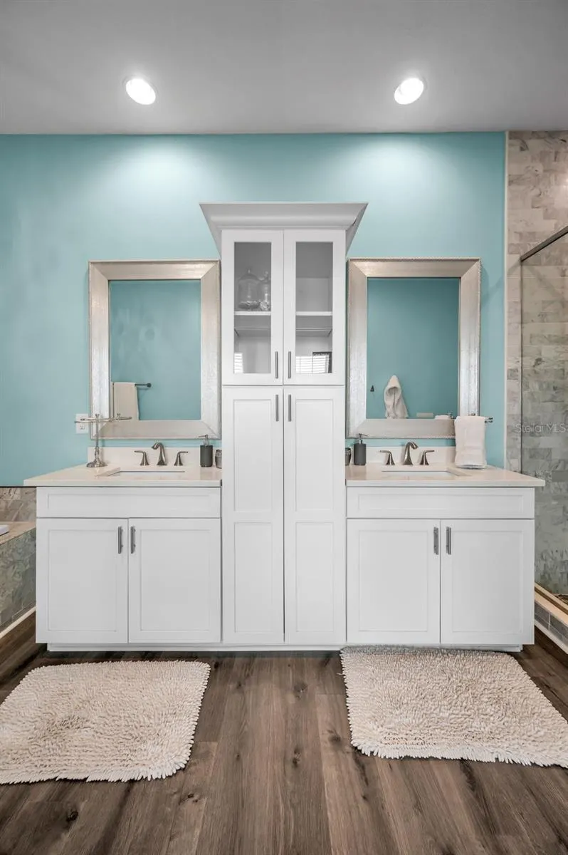 The spacious primary suite includes an ensuite bath with dual vanities, a large soaking tub, and an oversized tiled walk-in shower. A guest bedroom and an elegant guest bath with a large tiled shower complete the living quarters. Enjoy outdoor living from one of two second-story balconies—one overlooking the front for coastal breezes and one in the rear with views of your private backyard oasis.