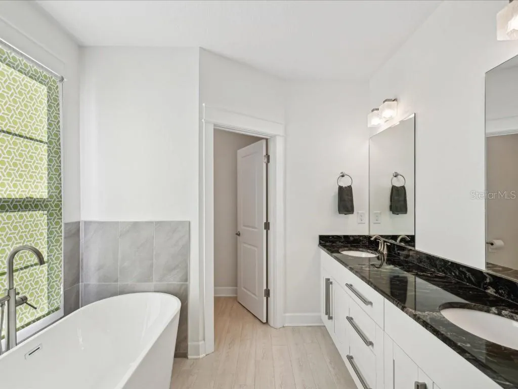 Open concept kitchen with huge island, wine bar and separate pantry area. The family room and dining room are large open rooms. Upstairs has a large primary suite that has an en suite luxurious bathroom with dual vanities, deep stand-alone soaking tub, glass enclosed shower with imported Italian tile and walk-in closet. The two additional bedrooms have a connecting Jack and Jill bathroom with dual vanities and a separate area for the shower/tub. The laundry room is also upstairs.