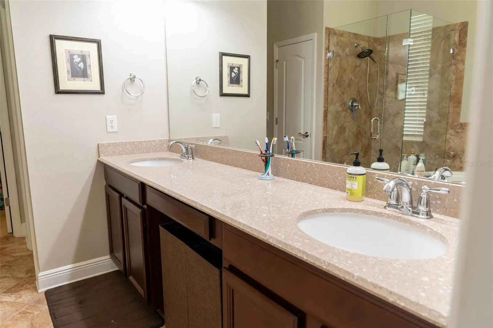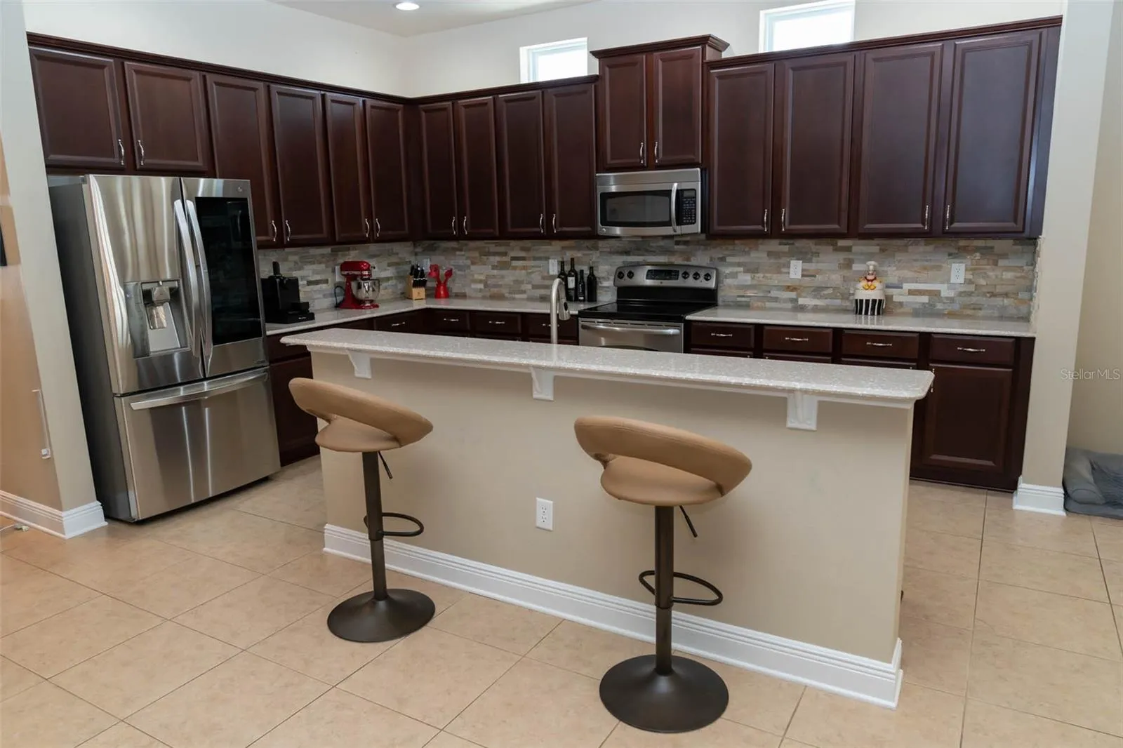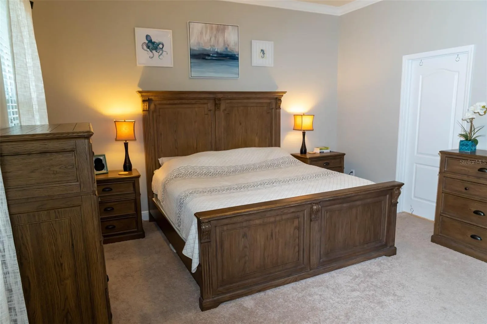 Beautiful and spacious, this two-story home offers approximately 2,196 square feet of well-designed living space with 3 bedrooms, 3 bathrooms, and a two-car garage. Thoughtfully updated with new appliances and a new HVAC system, the home features many desirable upgrades throughout, making it an exceptional place to call home. Elegant plantation shutters, tile flooring, crown molding, and designer lighting create a refined yet comfortable atmosphere. The kitchen is both stylish and functional, showcasing 42-inch wood cabinetry, appliances including a range, refrigerator, dishwasher, and microwave, and a convenient breakfast bar. A separate tiled dining area flows seamlessly into the expansive 16×16 family room, perfect for everyday living and entertaining. Washer and dryer are included. The downstairs master suite is filled with natural light and offers a private retreat with crown molding, a relaxing garden tub, dual vanities, and a large California Closet. Upstairs, youll find an additional bedroom and a full bathroom, ideal for guests or a private office space. Enjoy outdoor living on the generously sized 13×20 screened lanai and take advantage of lawn care being included in the rent. With its many extras and thoughtful layout, this home is ready to welcome its next residents.