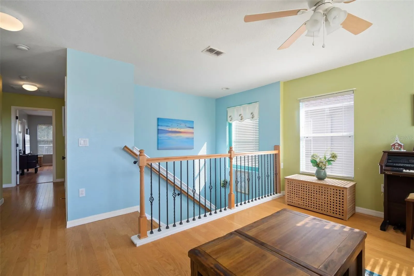 - Ceiling Fans(s), Open Floorplan, Thermostat, Walk-In Closet(s), Living Room/Dining Room Combo, Split Bedroom, Window Treatments, Solid Wood Cabinets, Solid Surface Counters, PrimaryBedroom Upstairs