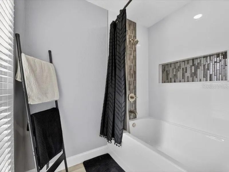 Inside, the split floor plan offers both functionality and privacy. The light-filled living and dining rooms flow seamlessly into the entirely remodeled kitchen, featuring all stainless steel appliances (2025), new cabinetry, upgraded lighting, and new ceramic tile flooring throughout. Automatic shades in the living, dining, family room and kitchen spaces enhance comfort and style.