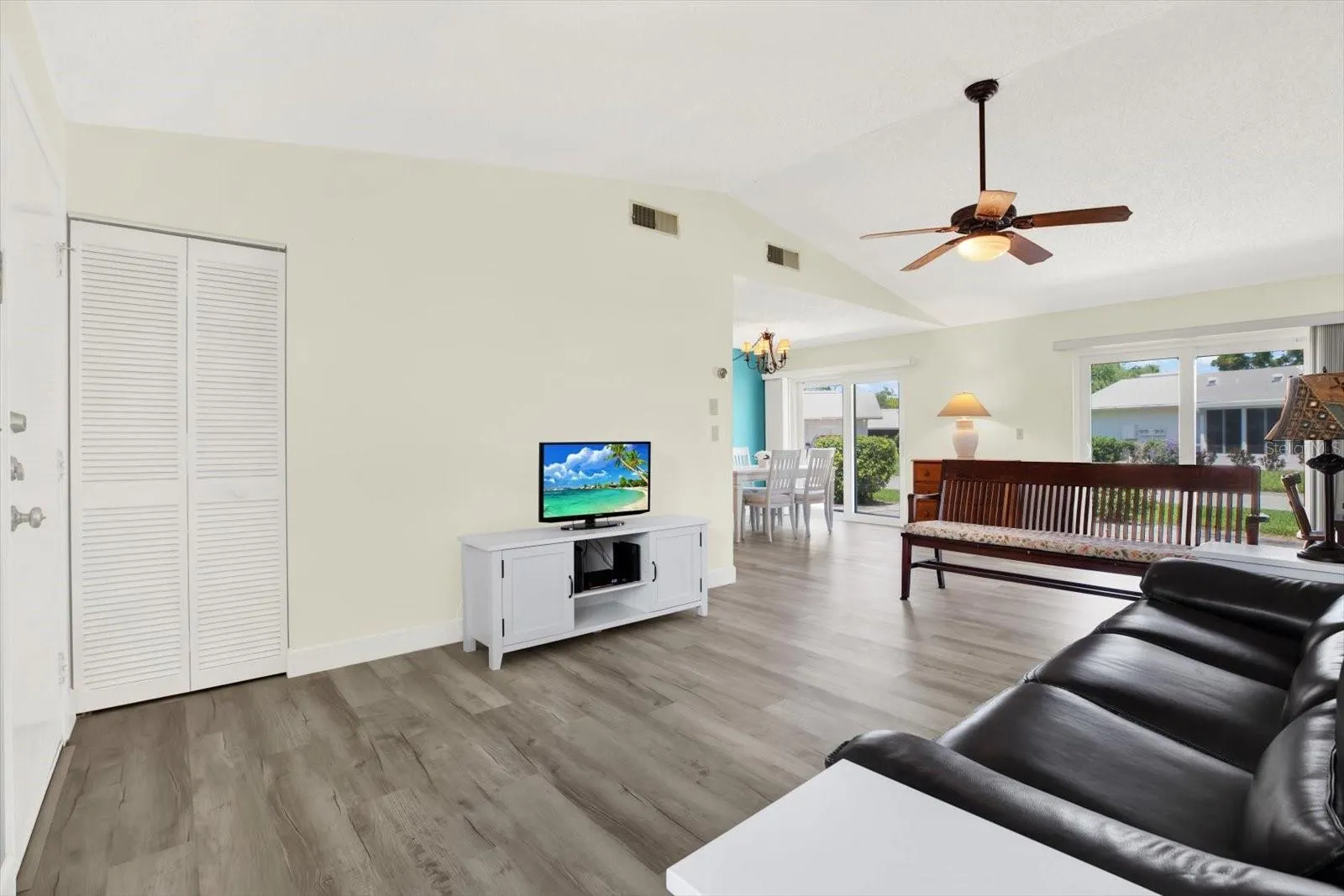 STOP SCROLLING!! If you’re looking for MOVE-IN READY, a GATED COMMUNITY, amenities without the responsibility – THIS ONE IS FOR YOU! This single-story, VILLA-STYLE condo with a PRIVATE GARAGE has been extensively upgraded with nearly $40,000 in recent improvements, offering move-in-ready ease and long-term value. Step inside and enjoy the airy, open feel created by VAULTED CEILINGS and double sliding glass doors, which flood the living space with natural light and create a seamless connection to the outdoors. The home features CoreTec Pro Plus luxury vinyl plank flooring (2022) and has been professionally leveled (2022) for lasting quality and comfort. Both bedrooms are generously sized to accommodate KING-SIZED BEDS, with the primary suite offering DUAL CLOSETS and a private en-suite bath. Storage is plentiful throughout, including large closets and a FULL-SIZE PRIVATE LAUNDRY CLOSET. An extra-long private driveway allows for multiple vehicles, with additional guest parking just steps away. Positioned at the front of the community, this home offers easy access in and out and is ideally located just a short walk from the exciting SkyTown development, coming soon across the street. Enjoy future walkability to a Sprouts Market, shops, and new dining options right outside your gated community. Major upgrades include: ROof (2024) ~ American Standard 16 SEER 2.5-ton HVAC with 5 KW heat (2023) ~ Custom blinds throughout (2023) ~ Hurricane-rated windows and sliding doors (2021) ~ Rheem 38-gallon water heater (2022) ~ Upgraded laundry box faucets (2022). Located in FLOOD ZONE X, the home sustained NO DAMAGE during the 2024 hurricanes. West Shore Village spans 30 acres of beautifully maintained grounds and offers RESORT-LEVEL AMENITIES, including: A geothermal heated pool ~ New tennis & pickleball courts ~ Shuffleboard courts & picnic area ~ A clubhouse with kitchen, pool table, library, and community room. The active WSV Entertainment Committee hosts a full calendar of social events, creating a warm, welcoming community atmosphere. Perfectly located with quick access to I-275, you’re just: 10–15 minutes to downtown St. Petersburg, 10 minutes by bike to Gulfport’s waterfront district, a short drive to St. Pete’s award-winning beaches, under 10 minutes to grocery stores and great dining. This is a rare opportunity to enjoy low-maintenance villa living with the privacy and space of a single-family home in one of St. Pete’s best-kept secrets. Don’t miss out—schedule your private showing today!
