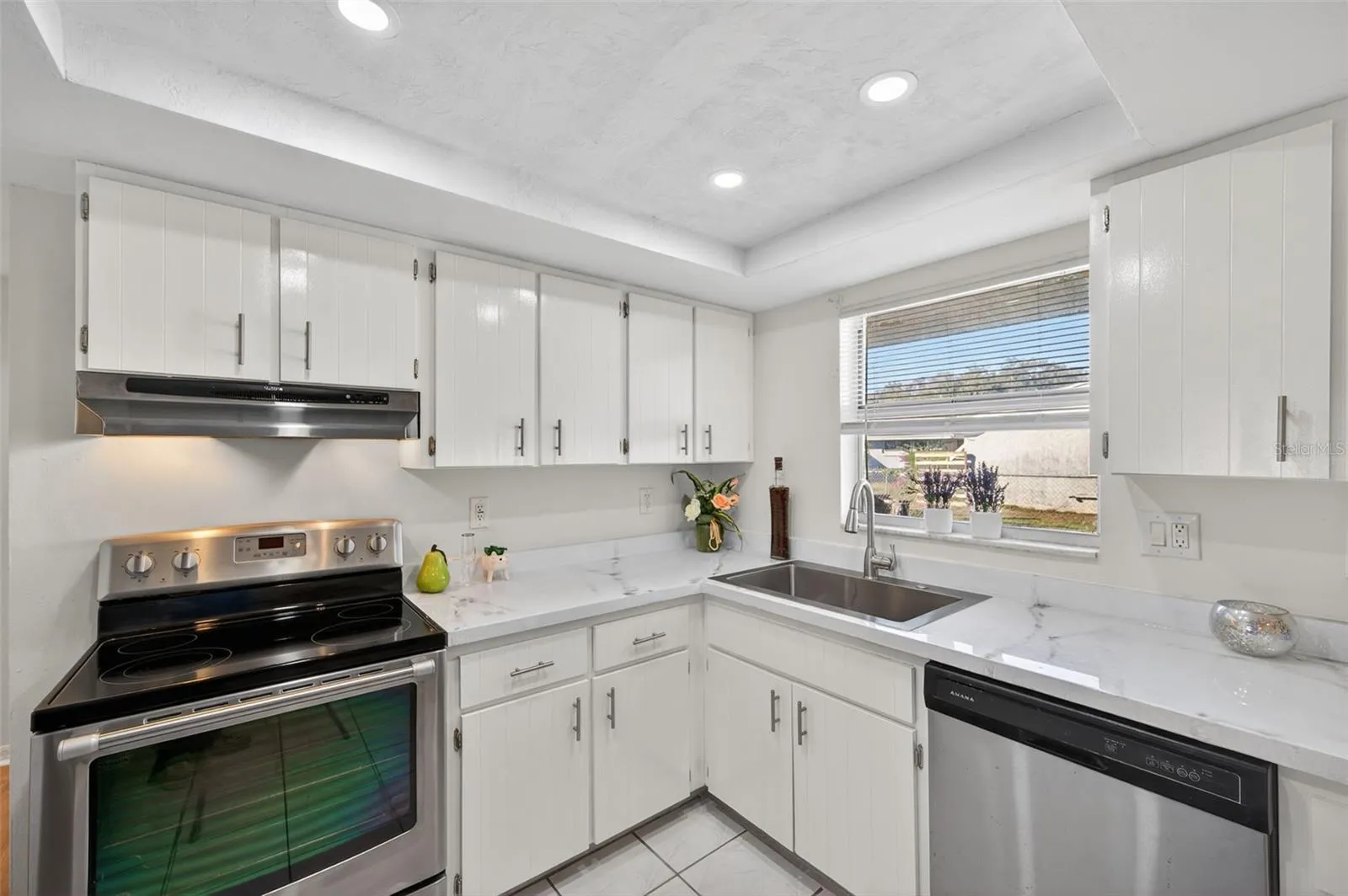 WELCOME TO YOUR TROPICAL PARADISE at 7547 Cumber Dr, New Port Richey, FL in the established Magnolia Valley subdivision in Pasco County. This FANTASTIC home consists of 3 bedrooms, 2 bathrooms & 1 car garage in a NO HOA or NO CDD zone. Key exterior features are low maintenance front lawn with a MAJESTIC shade tree as its centerpiece, raised garden planter, carriage lights, rain gutters, concrete long driveway & walkway as well as a covered front porch. As you step through the front door, you’ll LOVE the dedicated foyer with coat closet & the FRESH interior paint in a CRISP CLEAN COLOR! LUXURY VINYL floors have just been installed in the living room & all 3 bedrooms (1/2026) & the kitchen, dining room & bathrooms feature ceramic tile (NO CARPET ANYWHERE). The AMAZING kitchen consists of updated appliances (stainless steel side-by-side fridge with icemaker, smooth-top range, range vent & dishwasher), DEEP stainless steel farmhouse-style NEW sink with gooseneck faucet, plentiful cabinets with MODERN hardware, pantry closet & SUPER COOL epoxied counters for an artistic flair. Off the dining area is the primary bedroom with ceiling fan, closet, access to the screened lanai & private en-suite. The primary bathroom features newer vanity with sink, toilet & step-in shower. In this split bedroom plan, the 2nd & 3rd bedrooms are found on the opposite side of the home with the full bathroom nearby. These SPACIOUS bedrooms have ceiling fans & cedar closets with new sliding closet doors. The guest bathroom features 2 mirrored medicine chests, tray ceiling, recessed lights, UPDATED vanity with cultured marble counter & tub/shower combo. There is a CONVENIENT oversized linen closet in the hall. More details to LOVE about the home: the windows have blinds for added privacy, the backyard is FULLY FENCED with a chain link fence & the covered & screened lanai has a carriage light & painted concrete floor. The garage, with freshly painted floor, has attic access, side door exit & laundry hookups. Your STELLAR home is located close to restaurants, shopping, medical/professional offices, festivities & tourist attractions! MAKE THIS YOUR FUTURE HOME!
