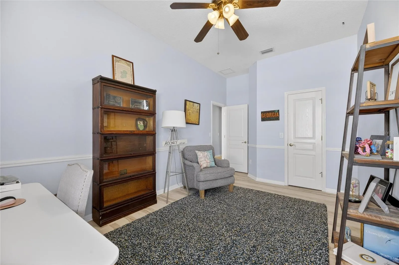 - Ceiling Fans(s), Crown Molding, Open Floorplan, Thermostat, Walk-In Closet(s), Living Room/Dining Room Combo, Eat-in Kitchen, Kitchen/Family Room Combo, Primary Bedroom Main Floor, Split Bedroom, Window Treatments, Stone Counters, Tray Ceiling(s)